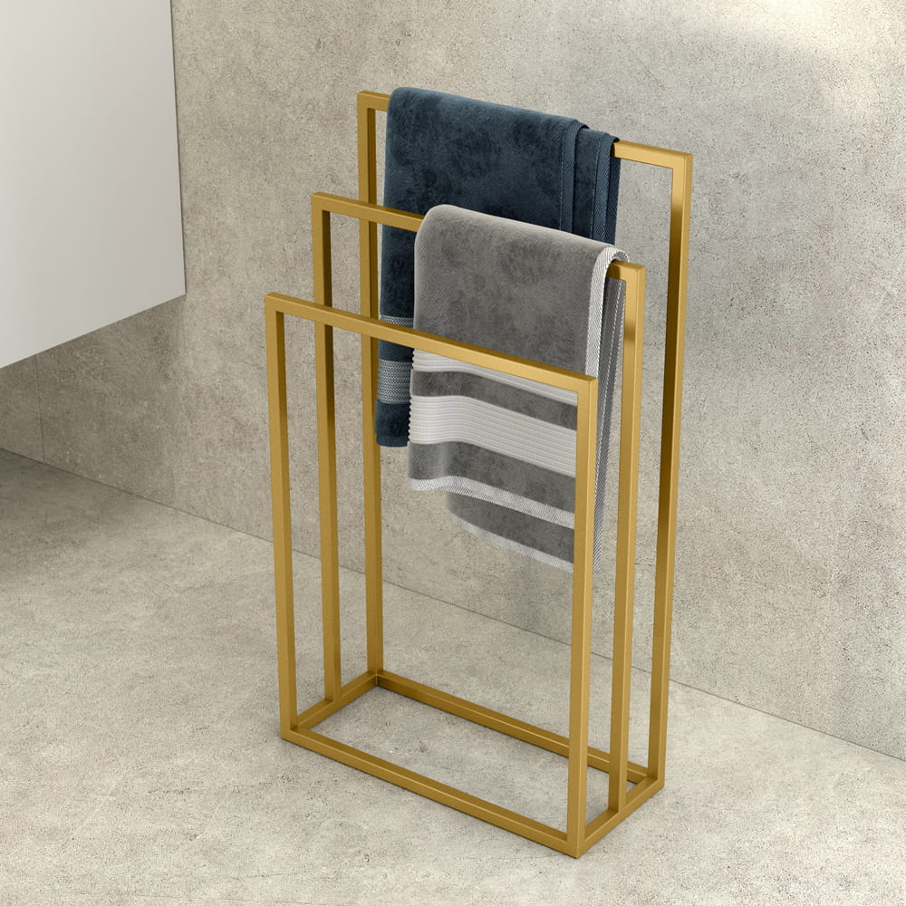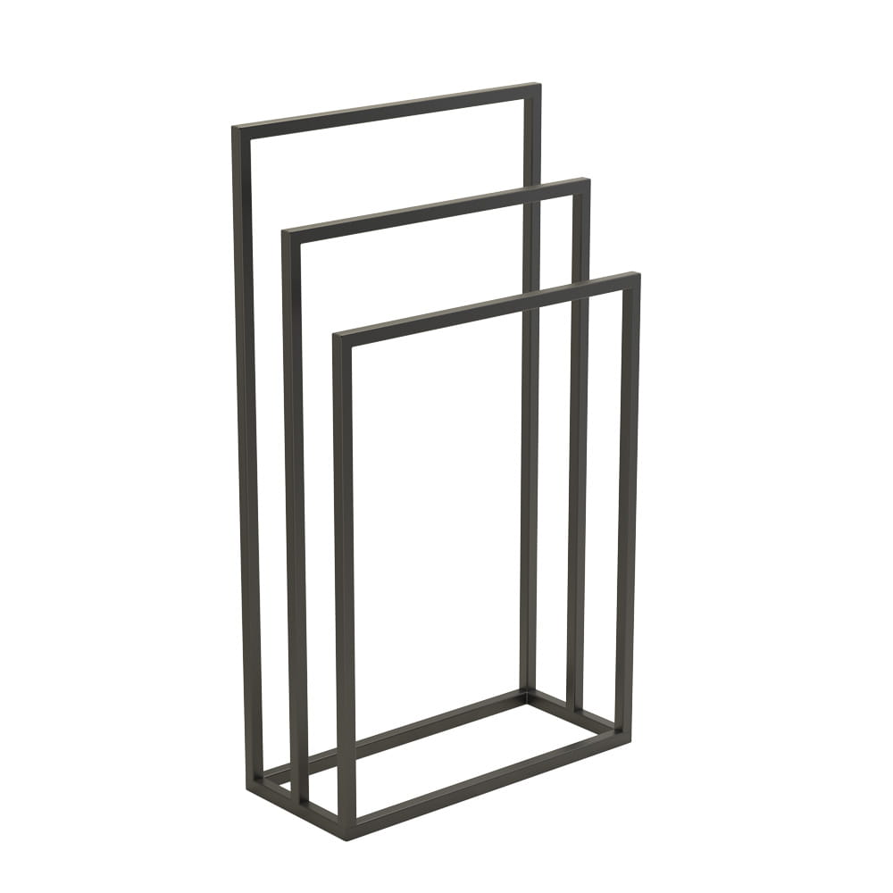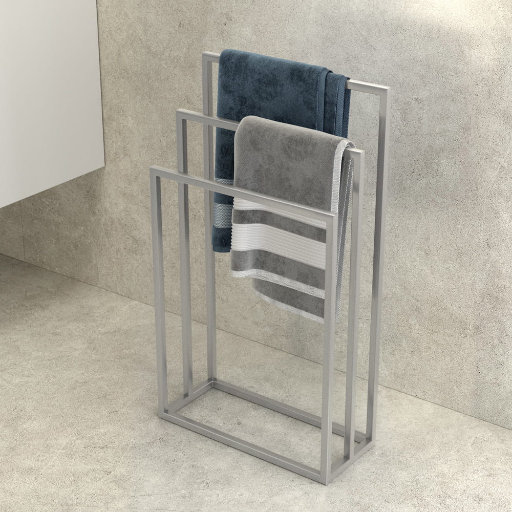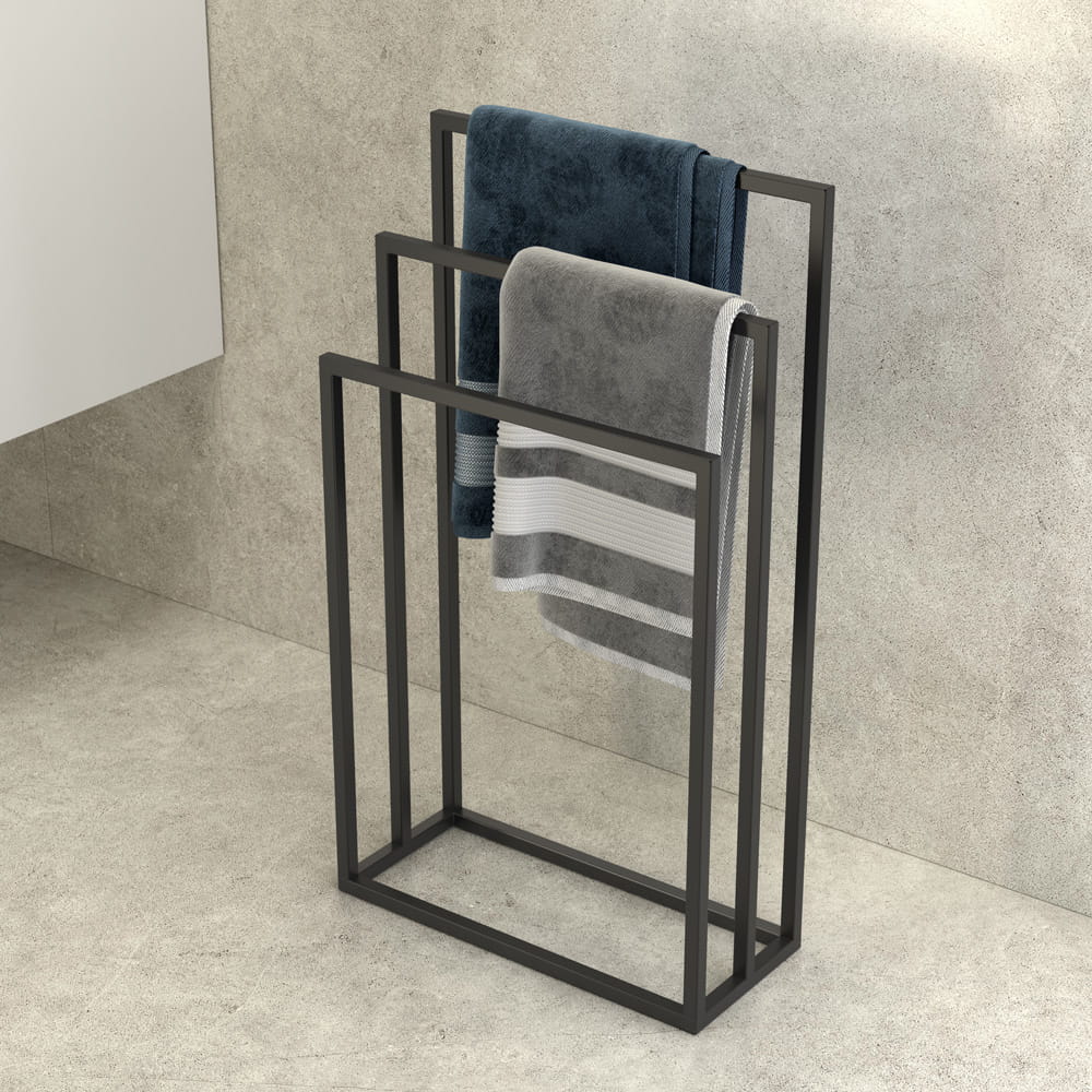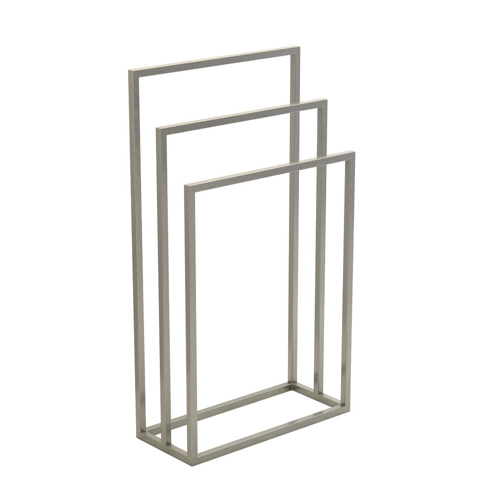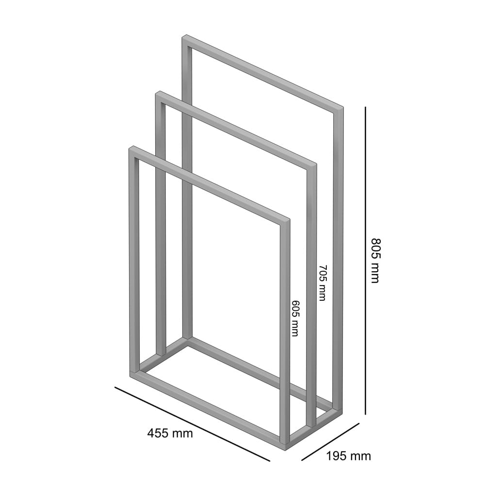 Un suport de prosoape de baie Paris 3, funcțional și original. Fabricat din oțel. Baza solidă permite poziționarea și mutarea suportului într-un loc convenabil. Distanța dintre „bare” asigură uscarea ușoară a prosopului.
