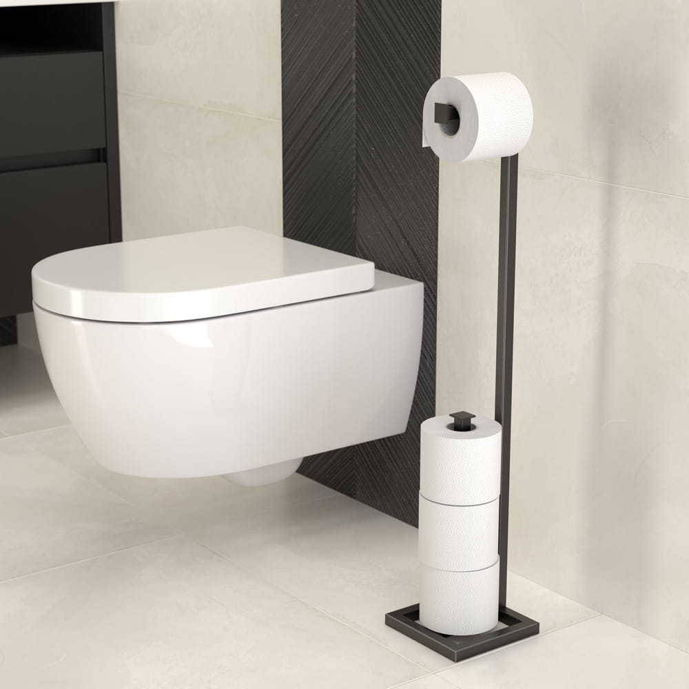 Suport funcțional și original pentru hârtie igienică Paris 1, cu spațiu pentru un stoc suplimentar de hârtie. Fabricat din oțel. Baza solidă și groasă permite poziționarea și mutarea suportului în locul dorit. O alegere excelentă pentru orice stil de interior.
