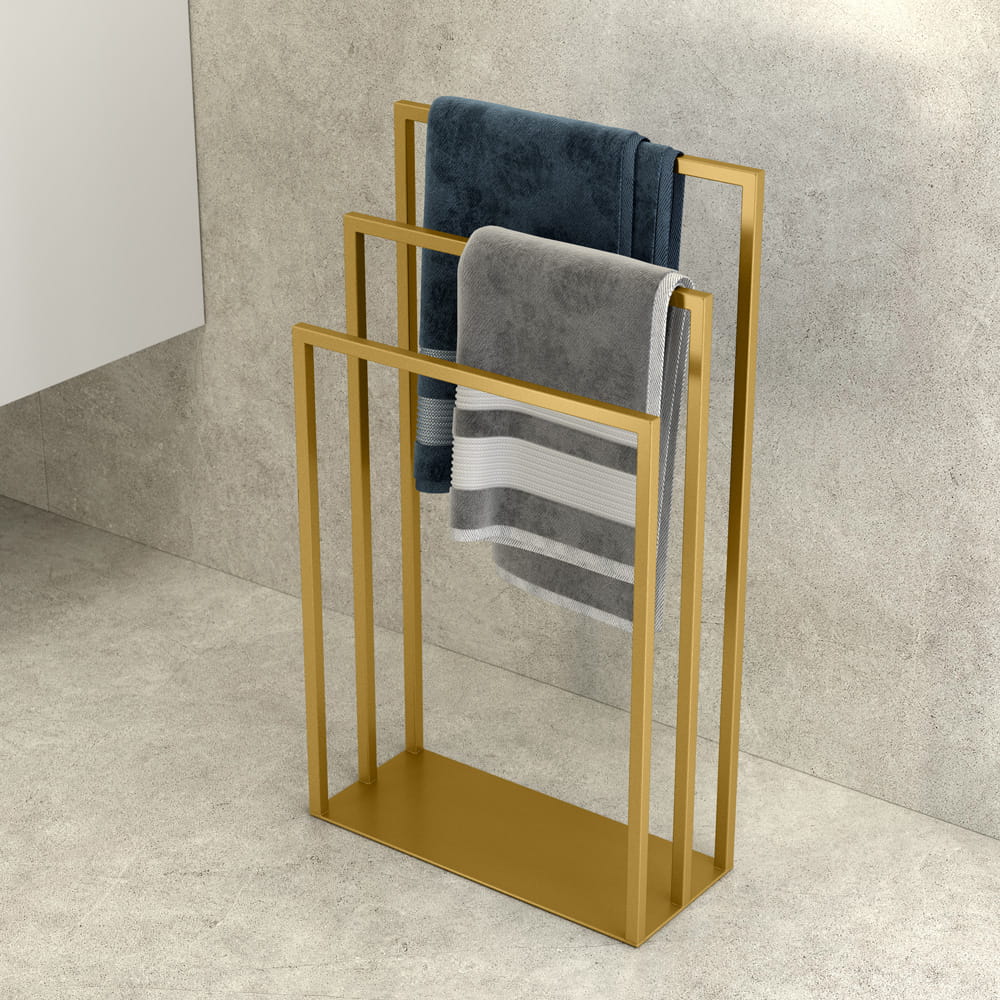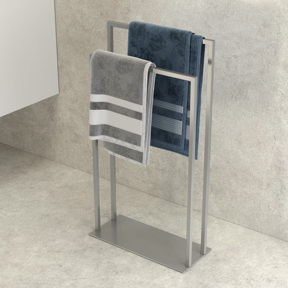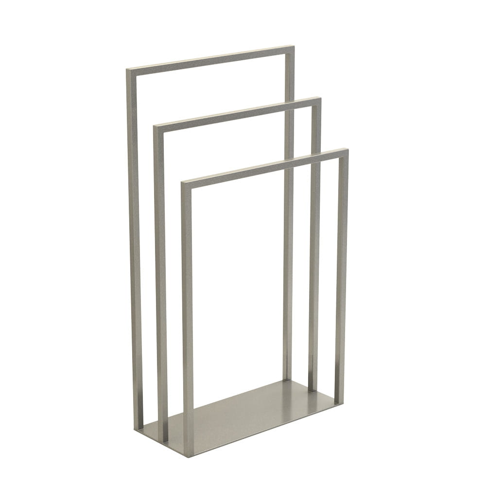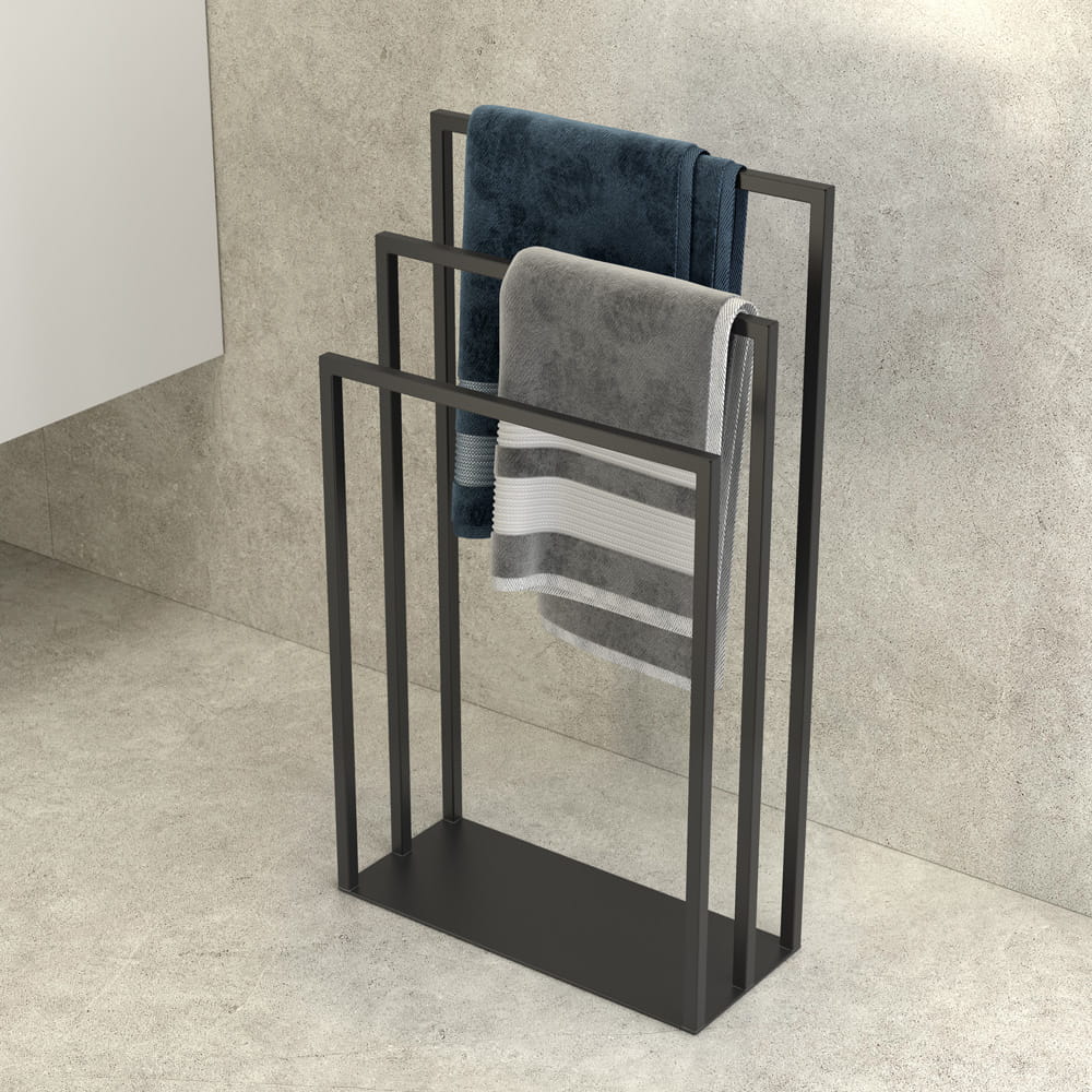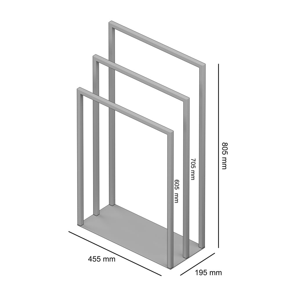 Un suport pentru baie New York 3. funcțional și original. Fabricat din oțel. Baza solidă permite poziționarea și mutarea suportului în locul dorit. Distanța dintre "bare" asigură uscarea eficientă a prosopului.