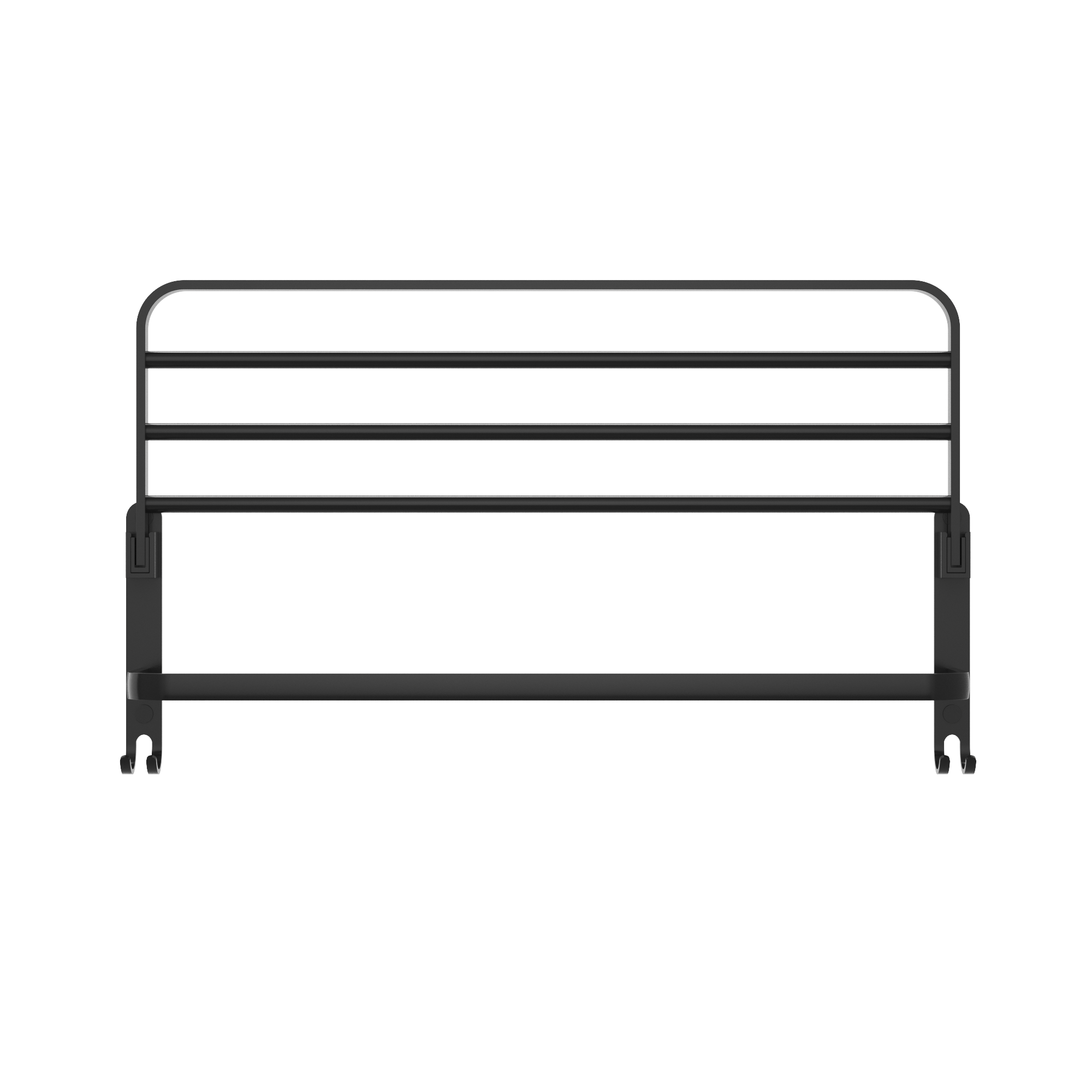 Raftul este finisat în culoarea neagră, care se potrivește perfect cu  băile moderne și elegante. Cârligul suplimentar de pe nivelul inferior permite agățarea obiectelor mai mici, cum ar fi prosoape de mâini sau bureți. Designul său minimalist, dar totodată funcțional face ca acesta să nu doar faciliteze organizarea, ci și să ofere un aspect estetic interiorului.