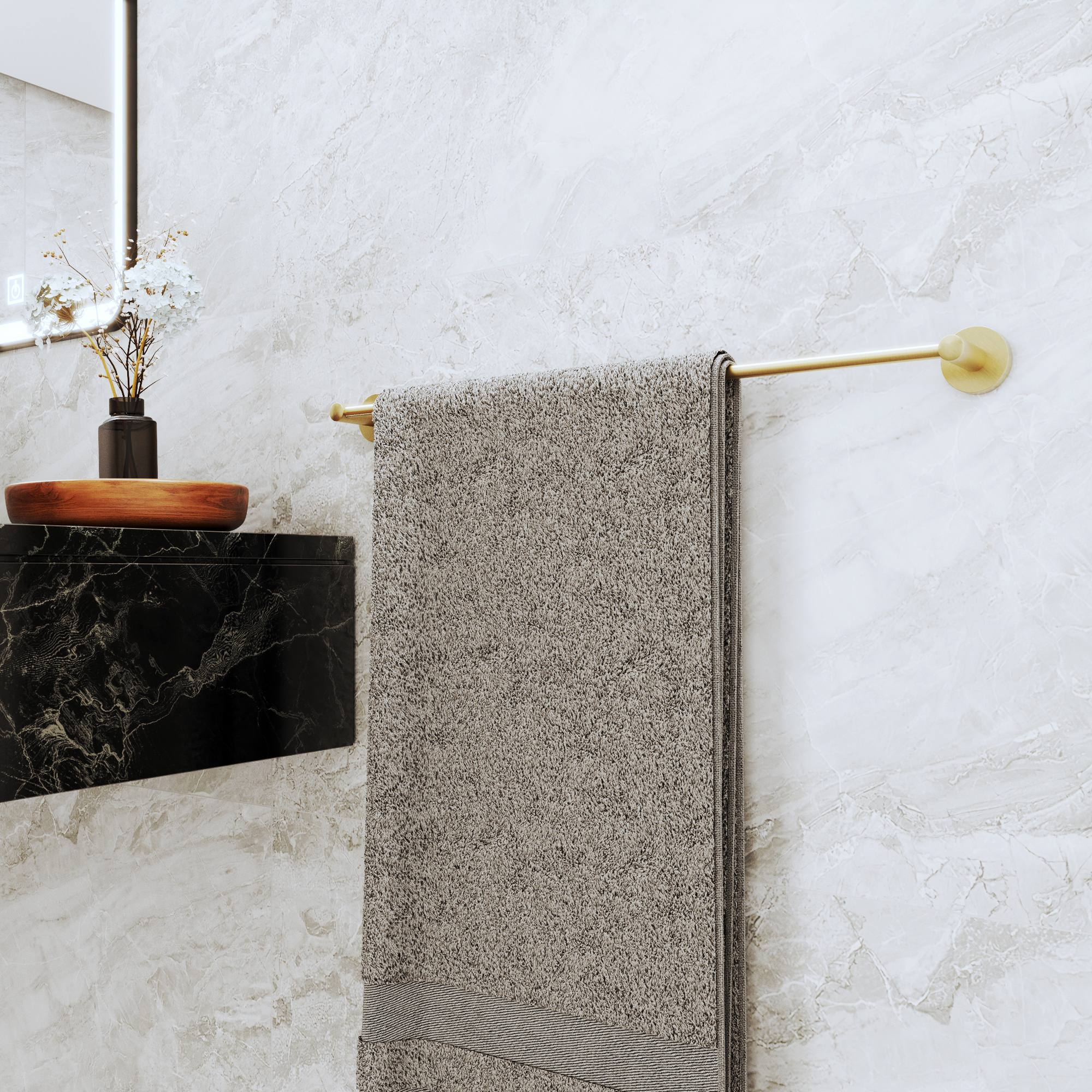 Bară modernă pentru prosop KIVO îmbină designul minimalist cu eleganța aurului periat. Este ideală atât pentru amenajări moderne, cât și clasice ale băilor, adăugând un aspect de lux interiorului. Fabricată din materiale de înaltă calitate, garanțează durabilitate și rezistență la umiditate.