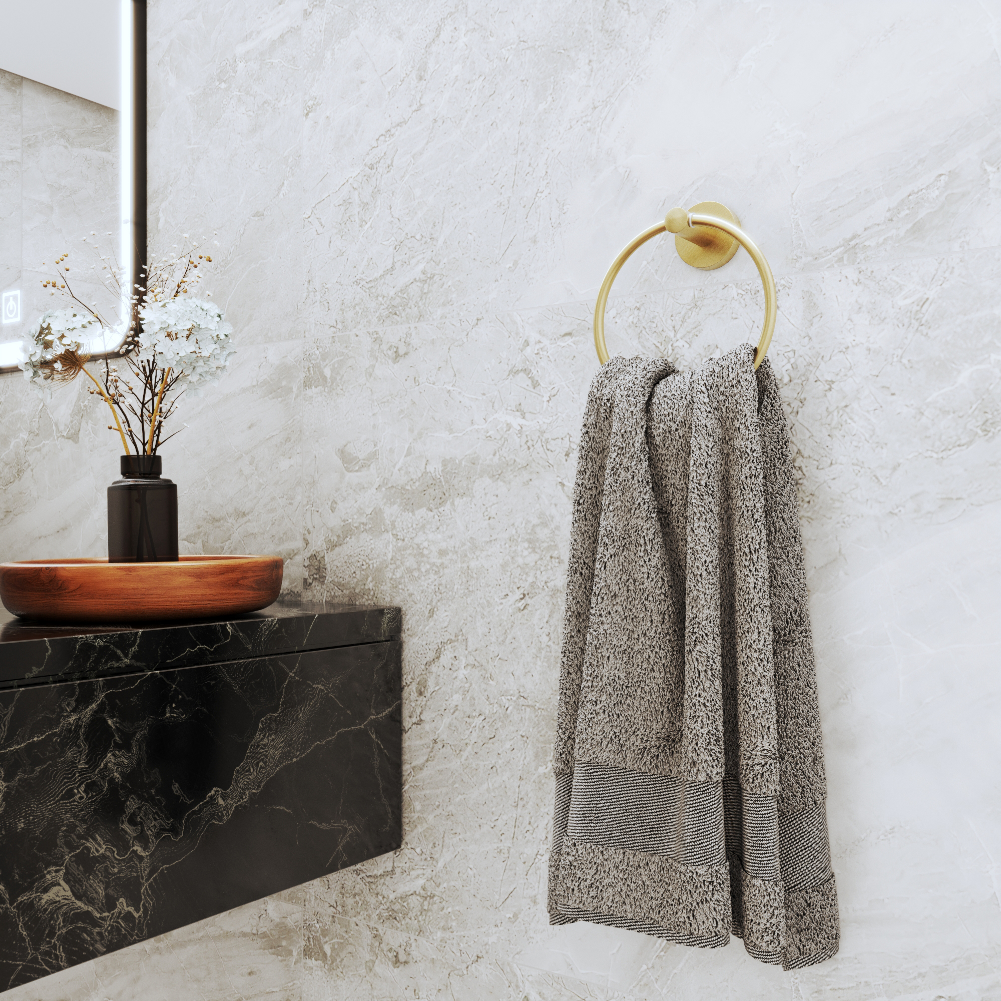 Suportul minimalist pentru prosop, sub forma unui inel, este un accesoriu elegant pentru orice baie. Datorită designului simplu, dar modern, se îmbină perfect atât cu interioare clasice, cât și contemporane. Construcția bazată pe un sistem de prindere solid pe perete asigură stabilitate și durabilitate în utilizare.