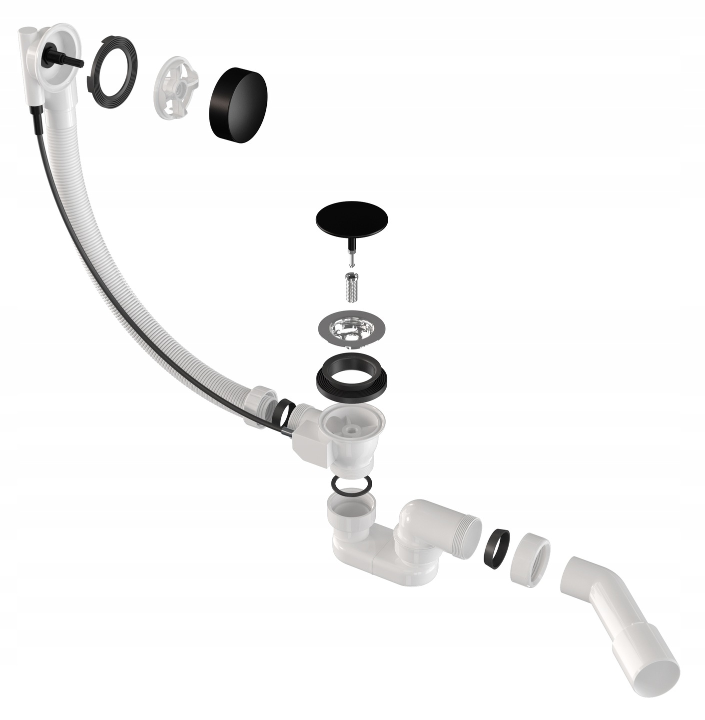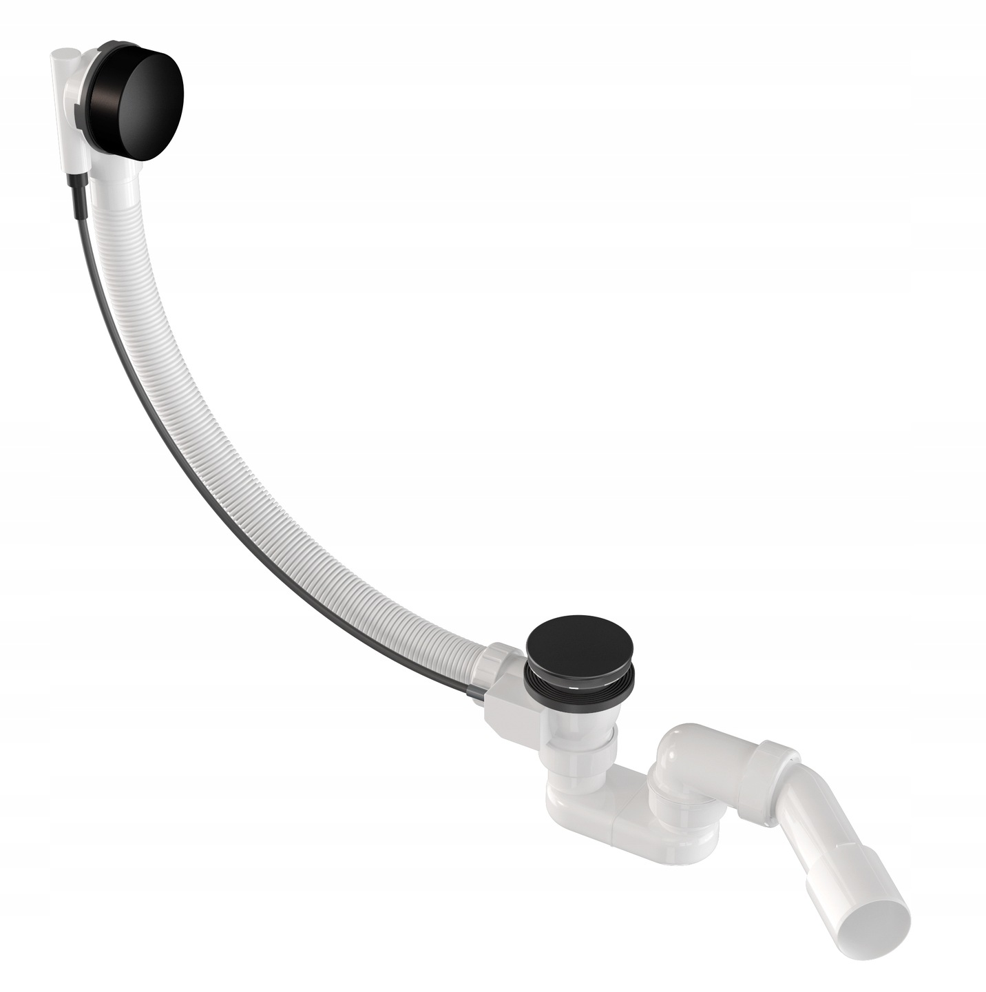 Sifon automat pentru cadă negru cu dop și buton rotativ