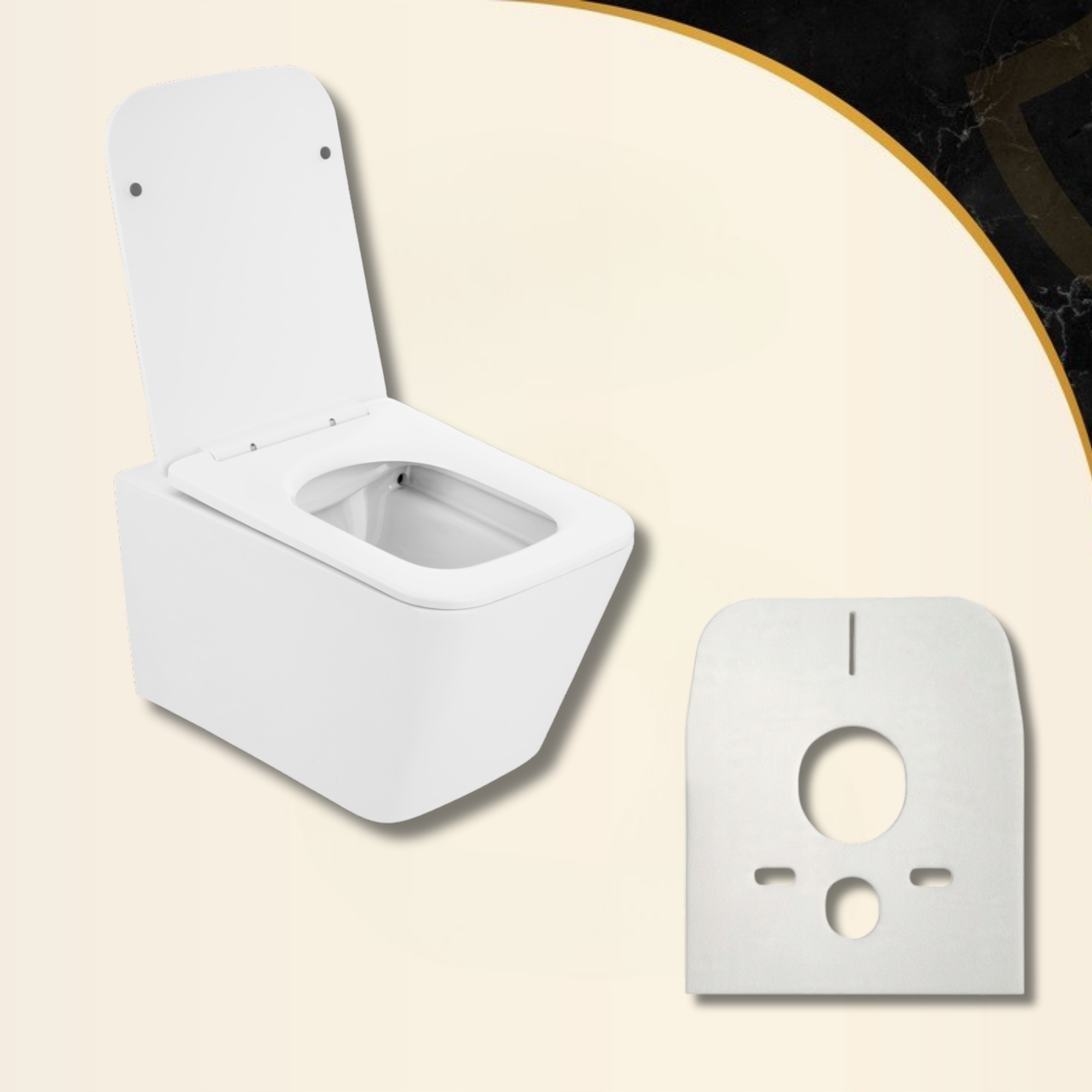 Da, setul include un capac WC adaptat, cu sistem de închidere lentă (soft-close).