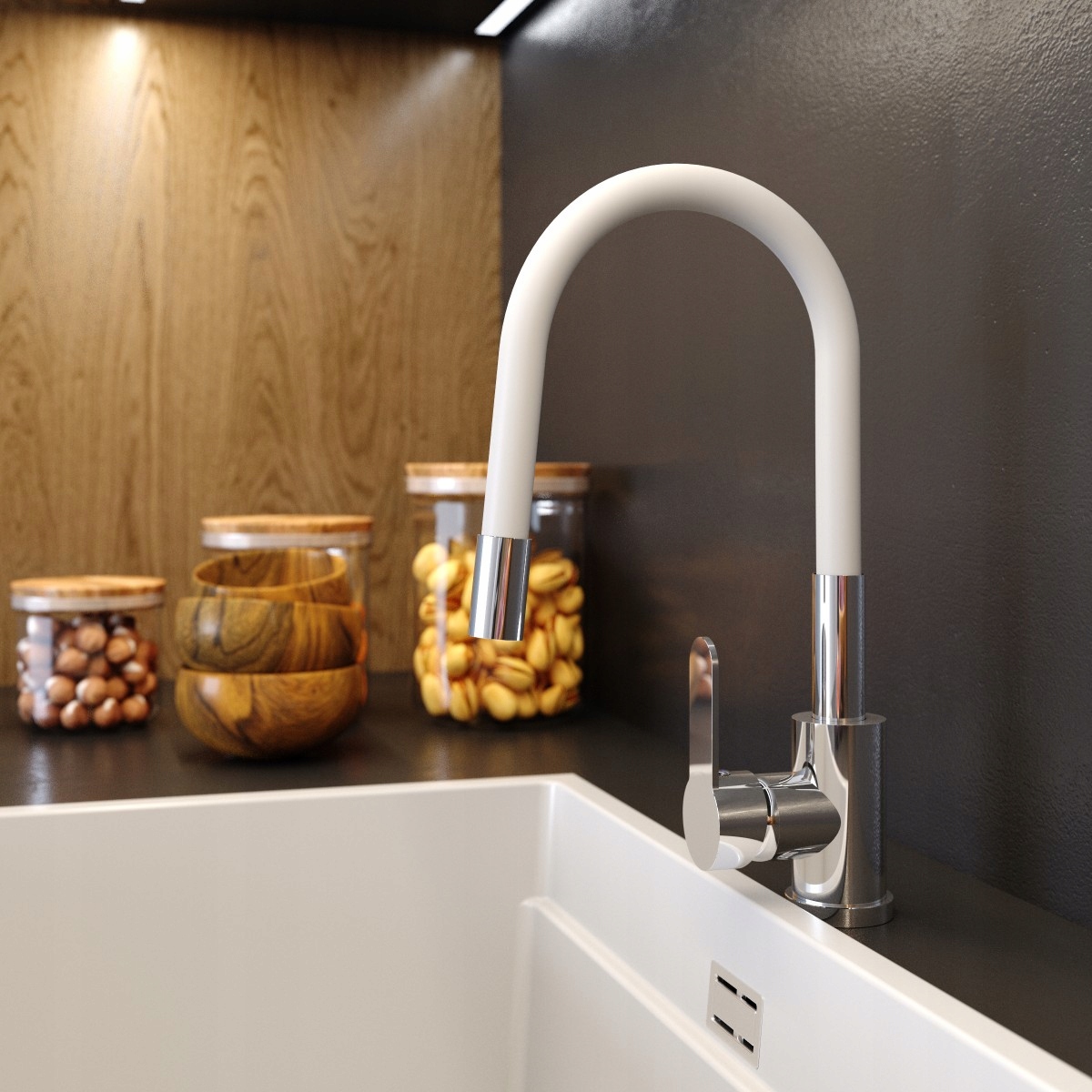 GRADO BATERIE DE BUCĂTĂRIE CU GURA DE SCURGERE FLEXIBILĂ ALBĂ
