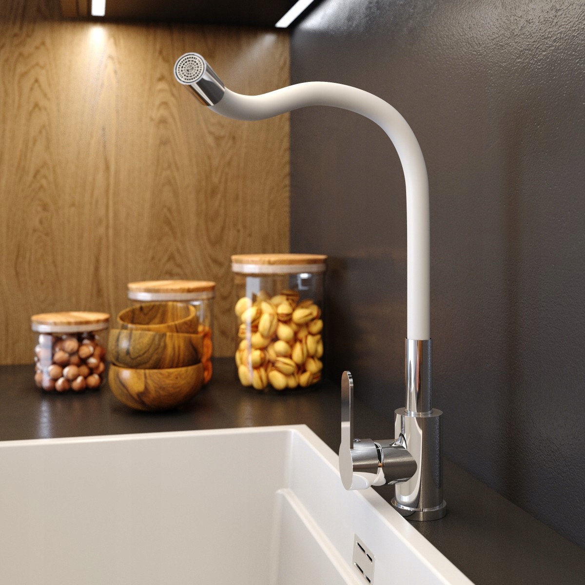 GRADO BATERIE DE BUCĂTĂRIE CU GURA DE SCURGERE FLEXIBILĂ ALBĂ