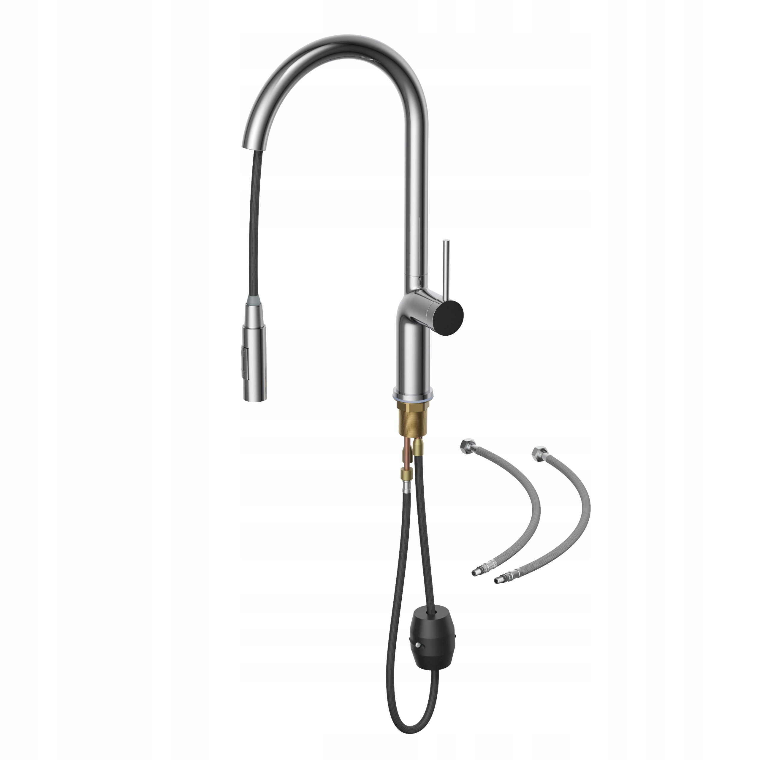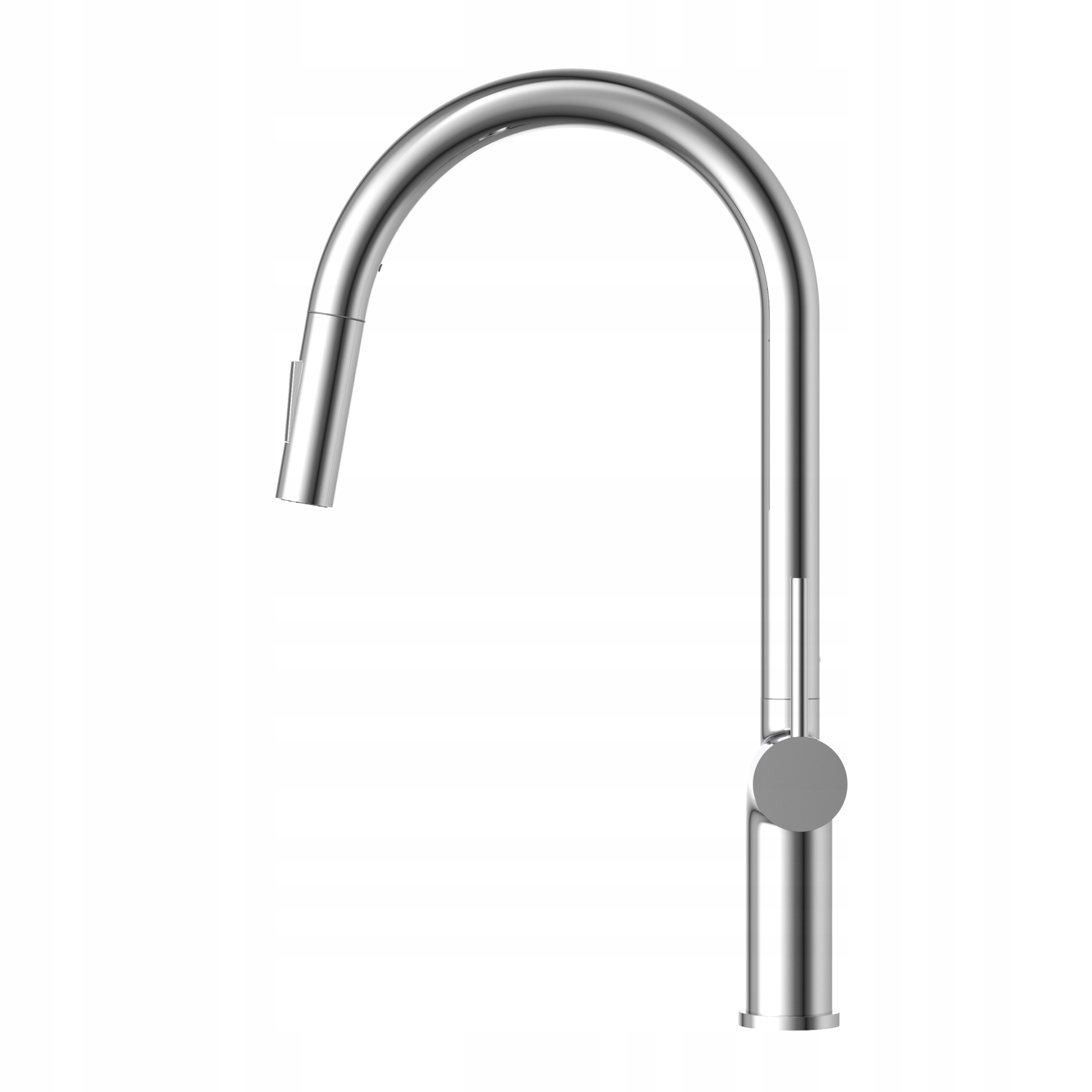 Forma distinctivă a pipei arcuite și maneta subțire de reglare subliniază caracterul modern al acesteia. Gura de scurgere retractabilă sporește confortul de utilizare, iar capul dublu-funcțional permite ajustarea jetului de apă în funcție de necesitățile actuale – de la turnarea precisă la funcția de duș. O combinație perfectă de estetică și funcționalitate!