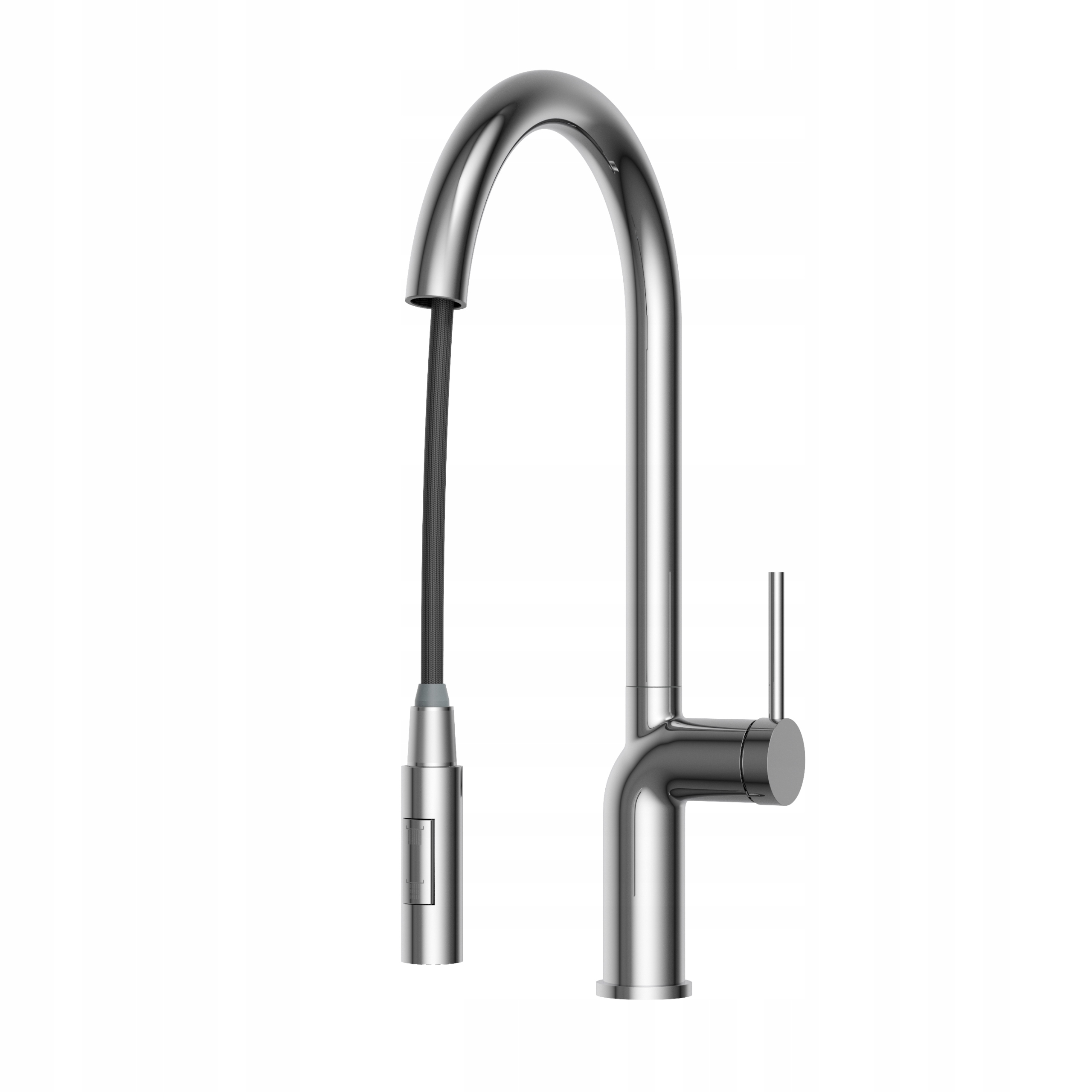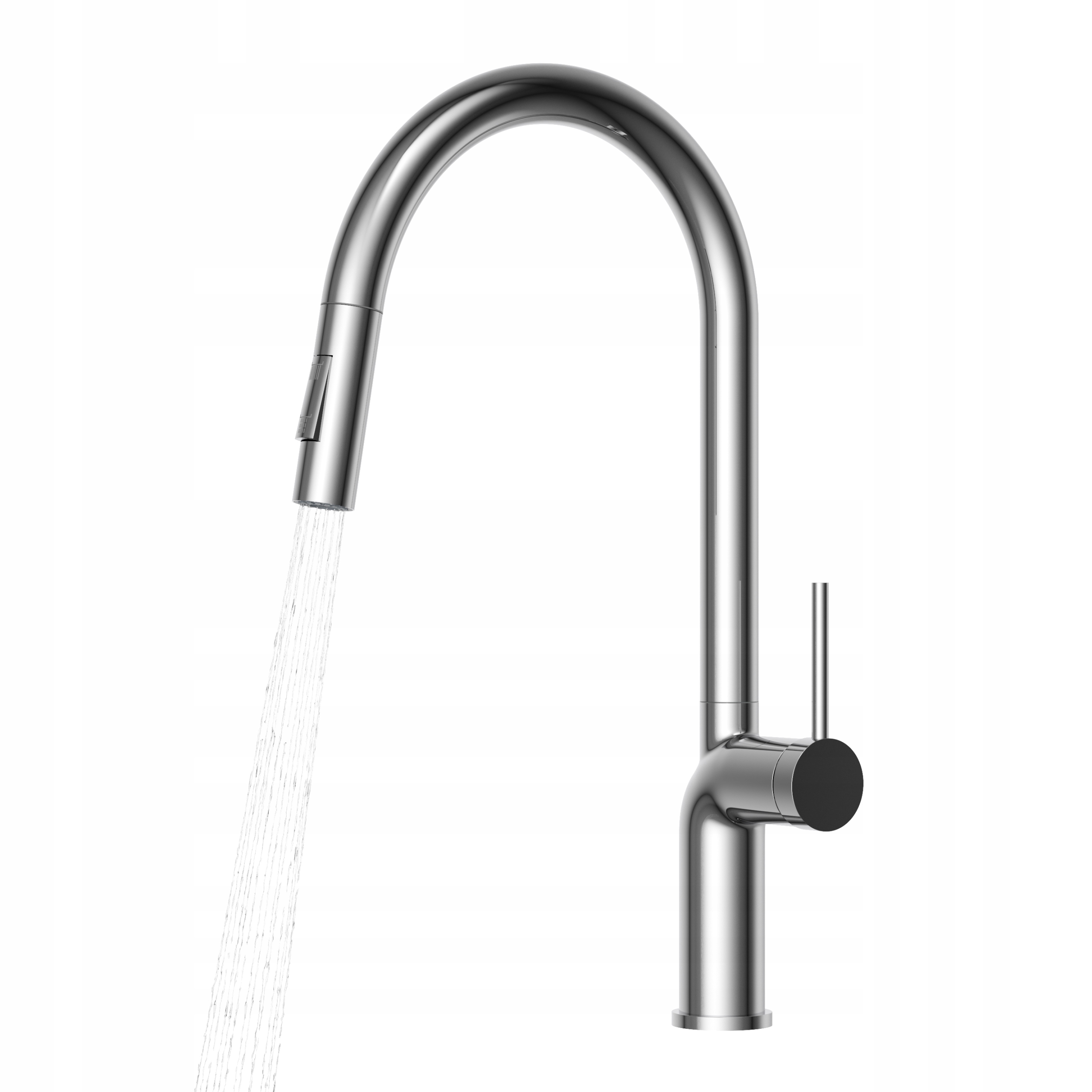 Forma distinctivă a pipei arcuite și maneta subțire de reglare subliniază caracterul modern al acesteia. Gura de scurgere retractabilă sporește confortul de utilizare, iar capul dublu-funcțional permite ajustarea jetului de apă în funcție de necesitățile actuale – de la turnarea precisă la funcția de duș. O combinație perfectă de estetică și funcționalitate!