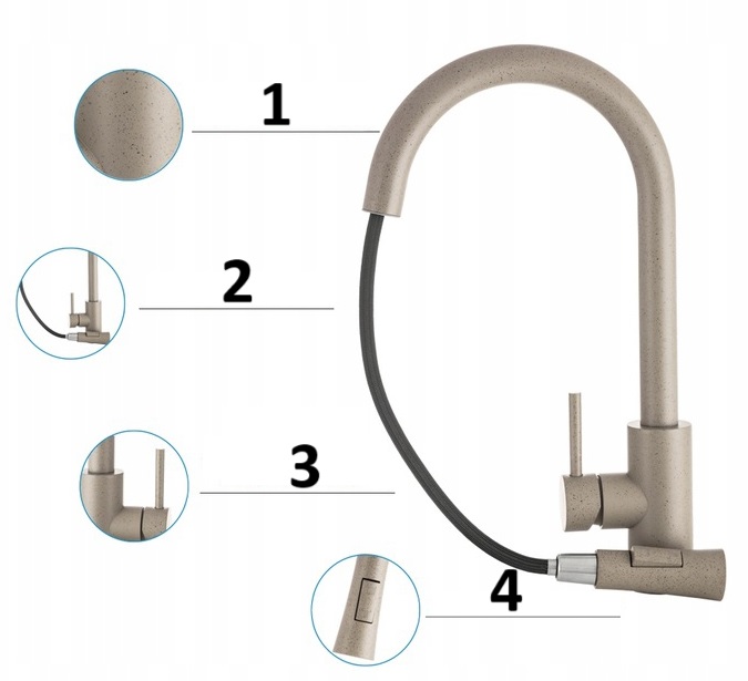 - Duș extensibil, bifuncțional (două tipuri de flux de apă)