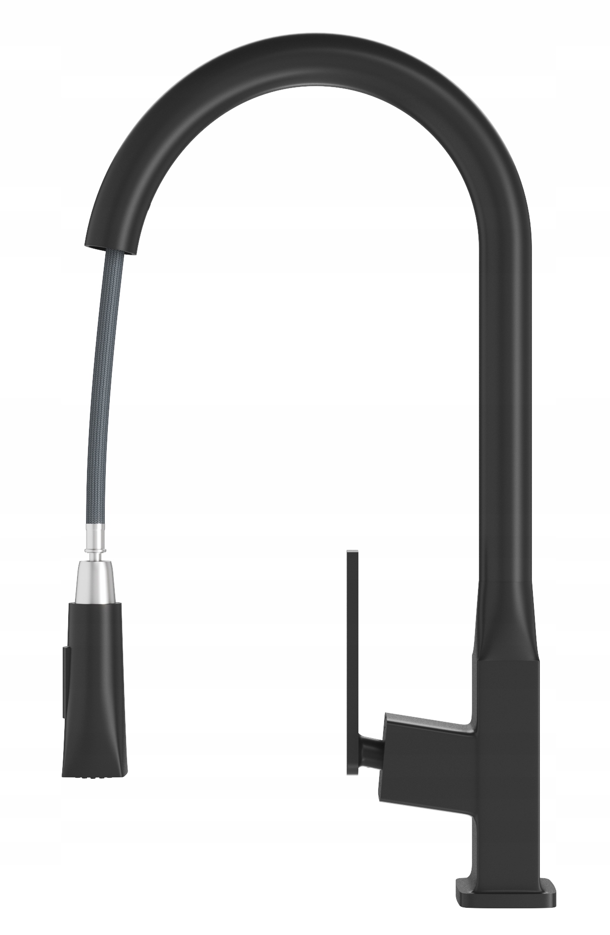 BATERIE DE BUCĂTĂRIE CU GURA DE SCURGERE EXTENSIBILĂ ȘI DOUĂ FUNCȚII DUȘ NEGRU MAT PASO