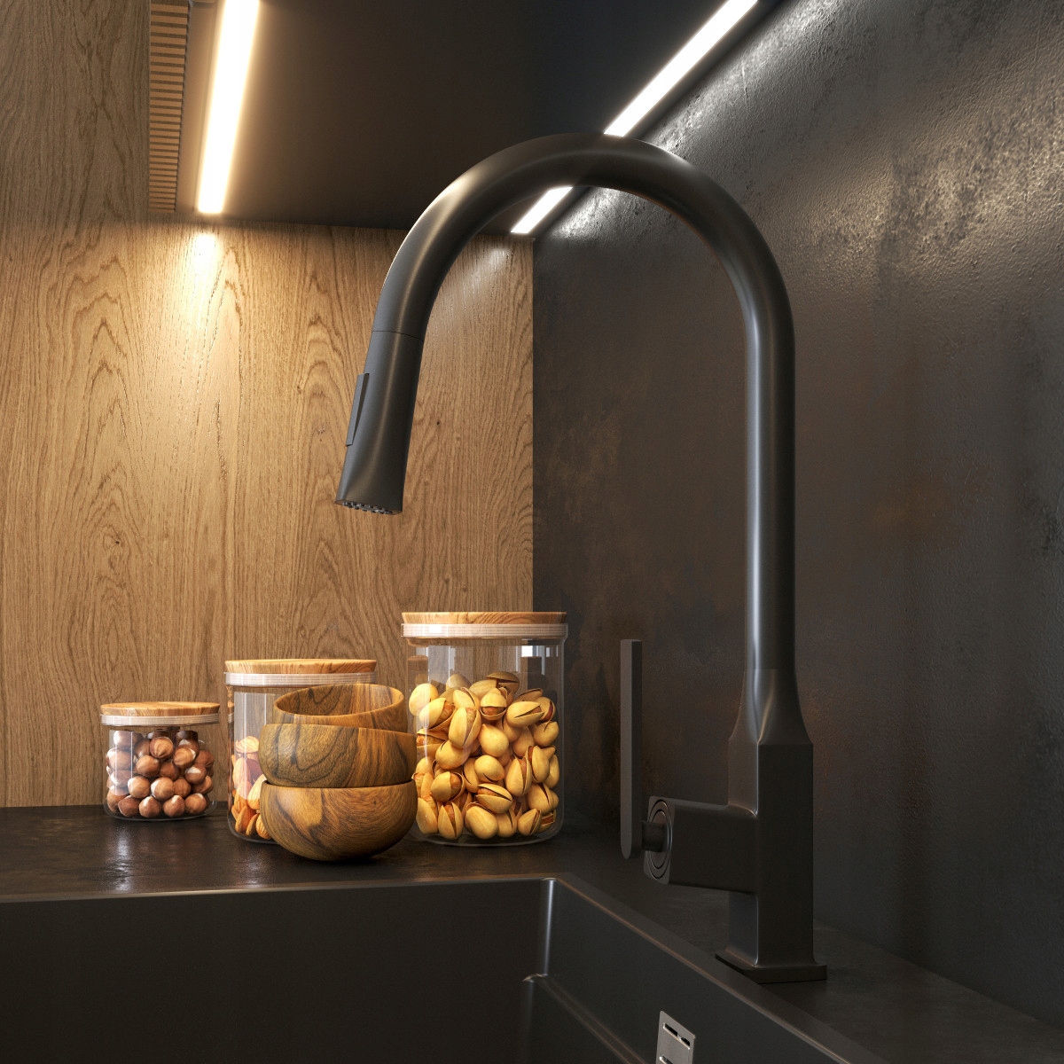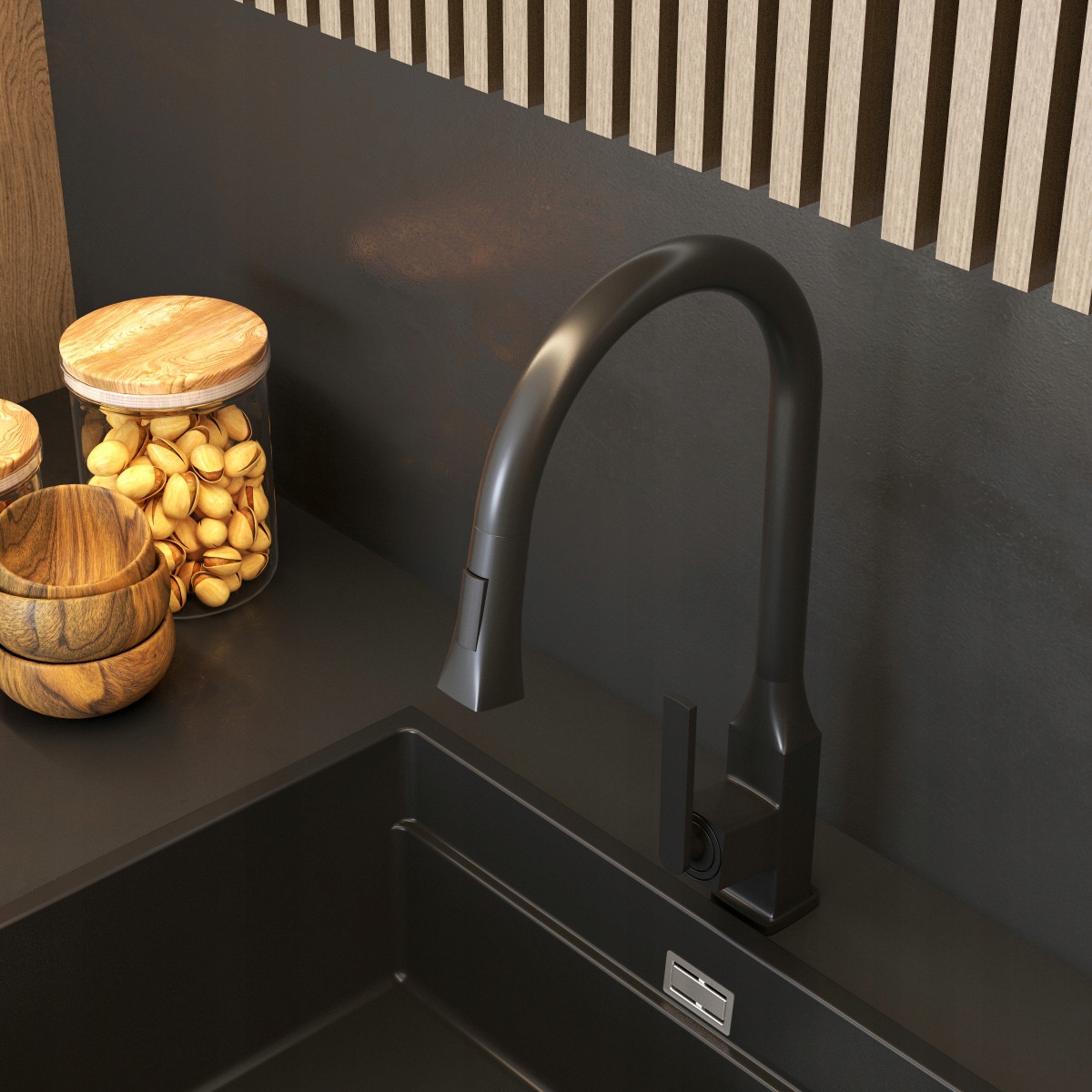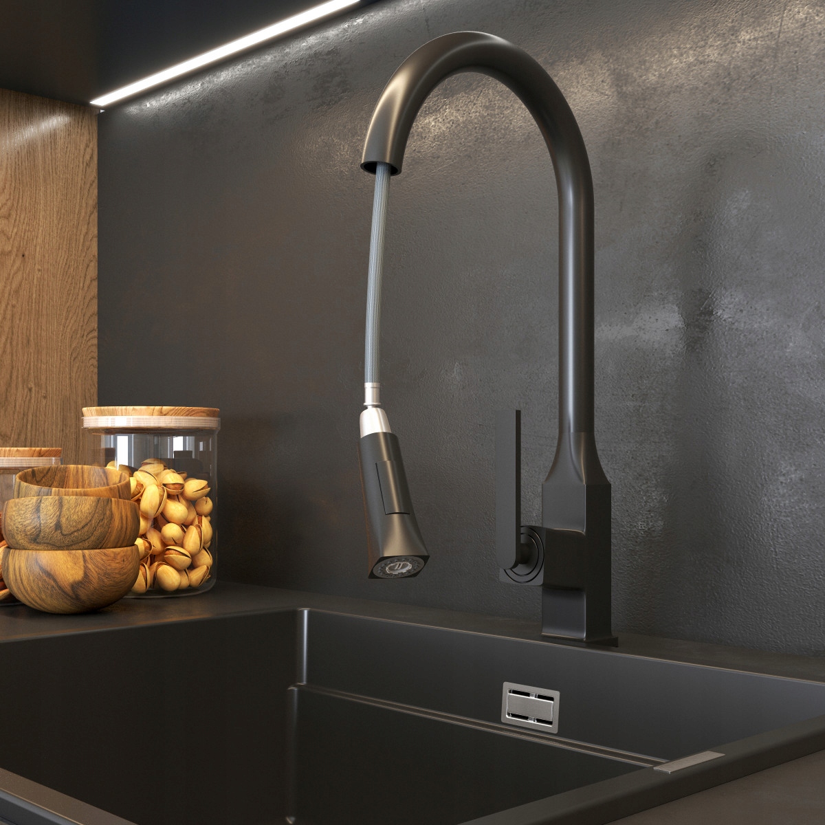 Modelul este realizat din alamă durabilă și rezistentă, iar culoarea sa (negru mat) se potrivește perfect tendințelor actuale și este în armonie cu numeroase aranjamente bucătărești.