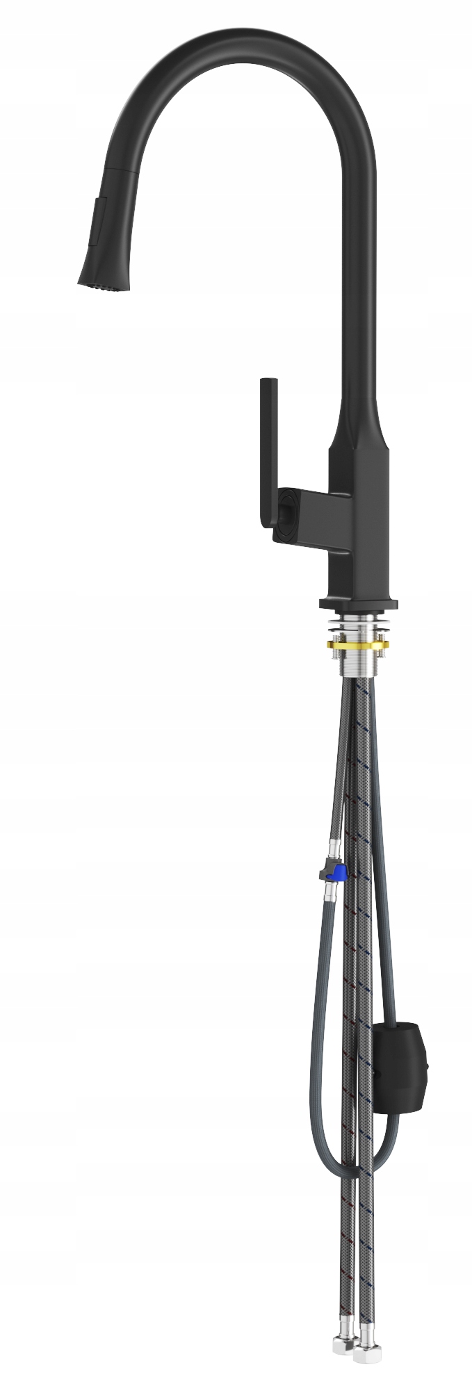 BATERIE DE BUCĂTĂRIE CU GURA DE SCURGERE EXTENSIBILĂ ȘI DOUĂ FUNCȚII DUȘ NEGRU MAT PASO