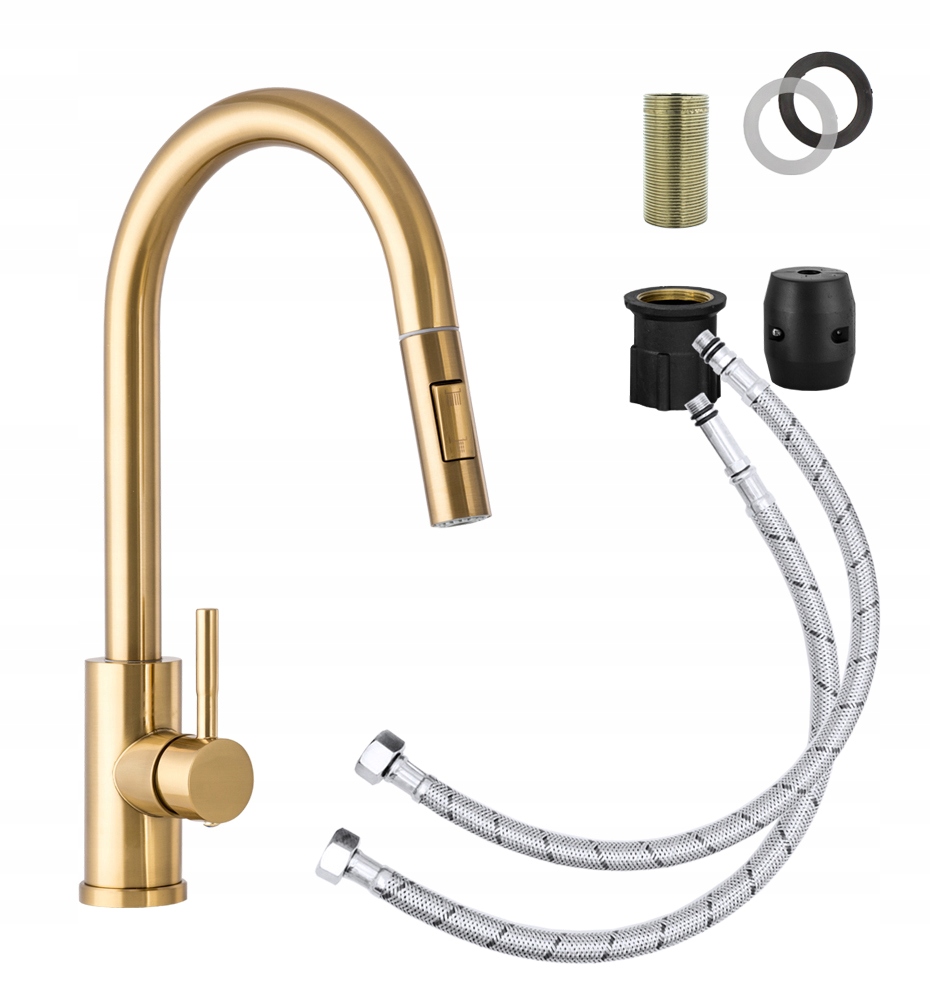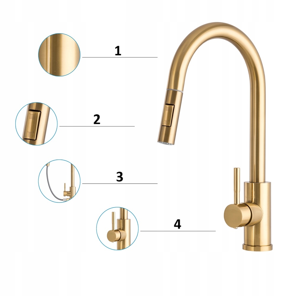 BATERIE DE BUCĂTĂRIE CU GURĂ DE SCURGERE EXTRACTIBILĂ, FINISAJ AUR PERIAT