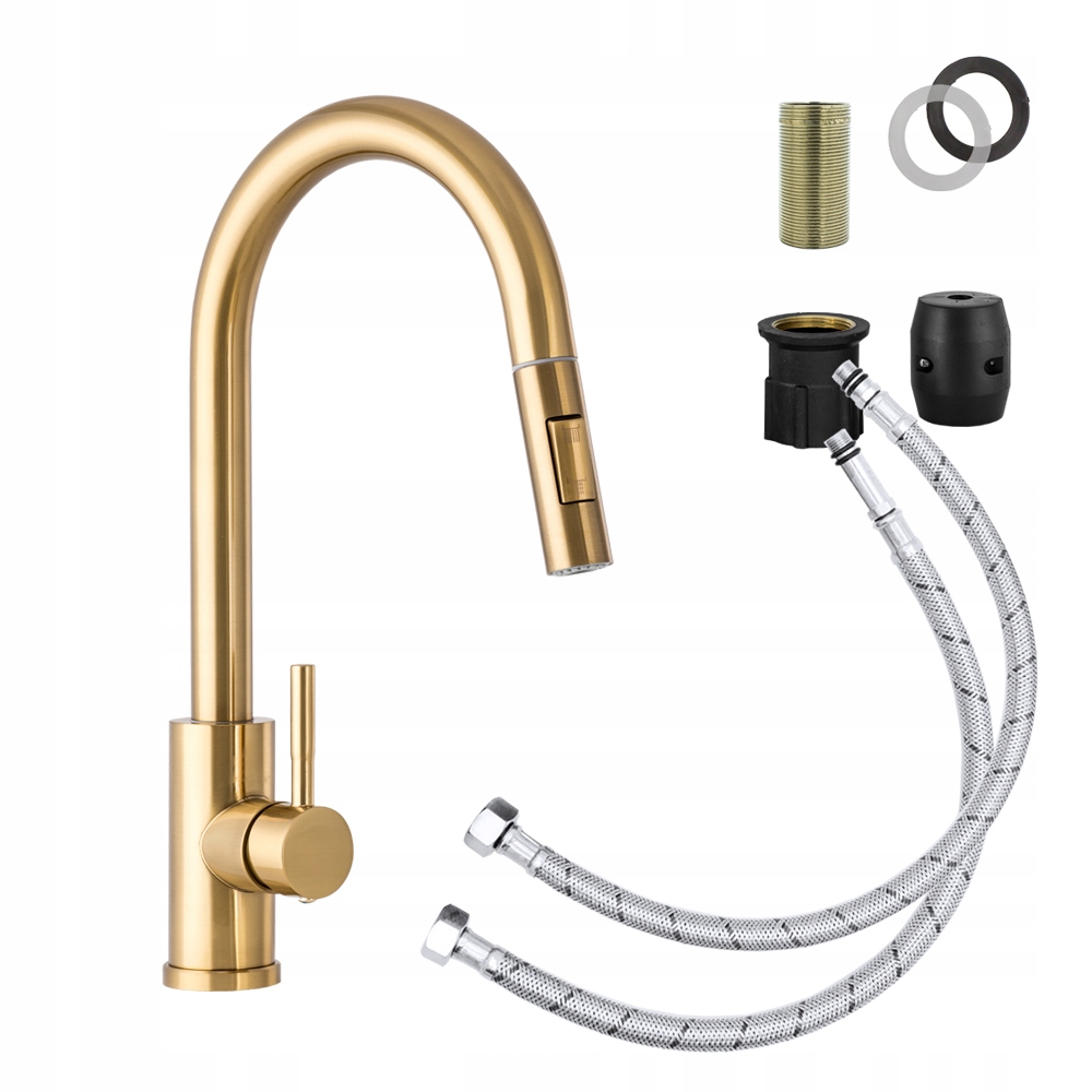 BATERIE DE BUCĂTĂRIE CU GURĂ DE SCURGERE EXTRACTIBILĂ, FINISAJ AUR PERIAT