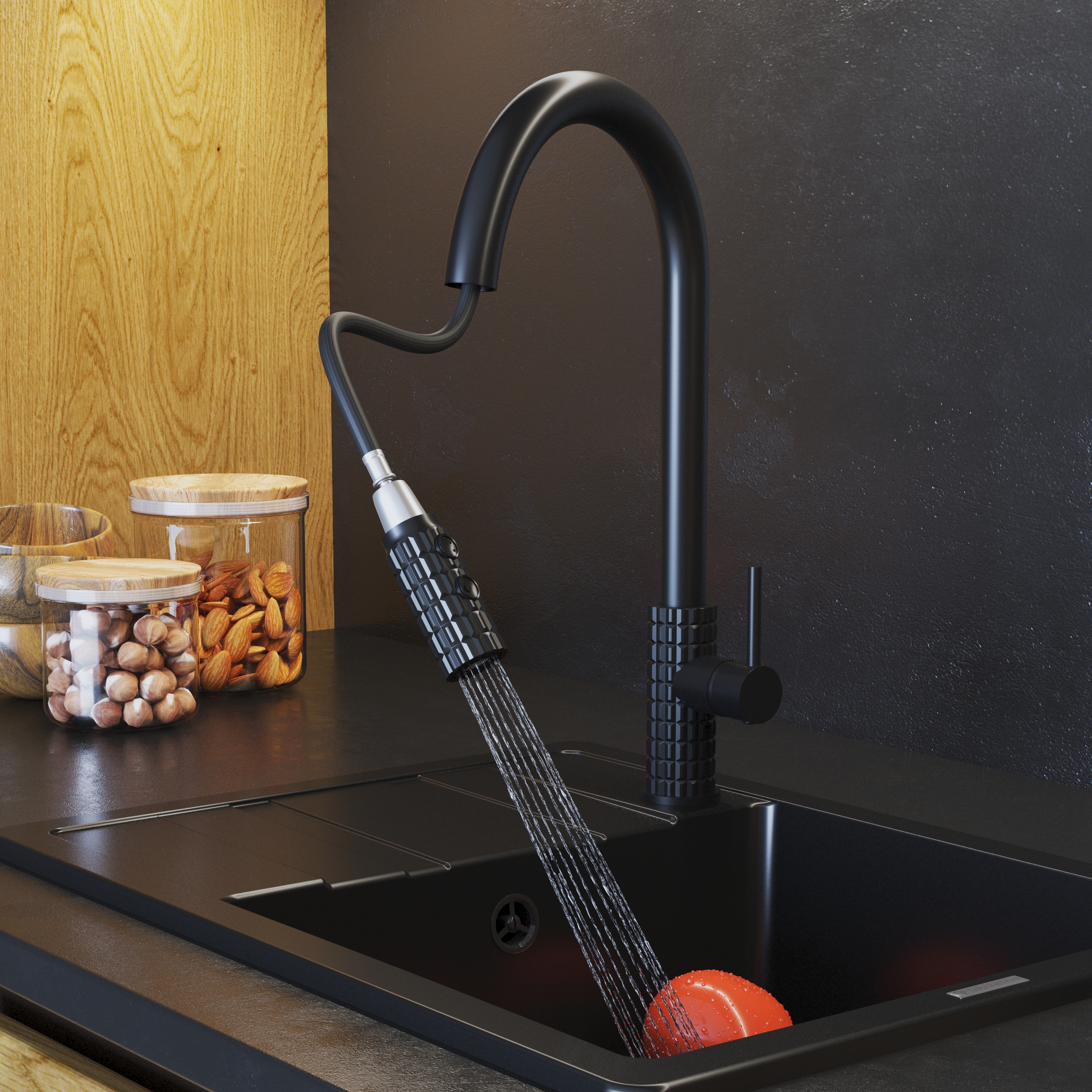 0 OPINII PENTRU Baterie Bucătărie cu Duș Extractibil Neagră Snake Pro Robinet de Chiuvetă Montaj pe Blat