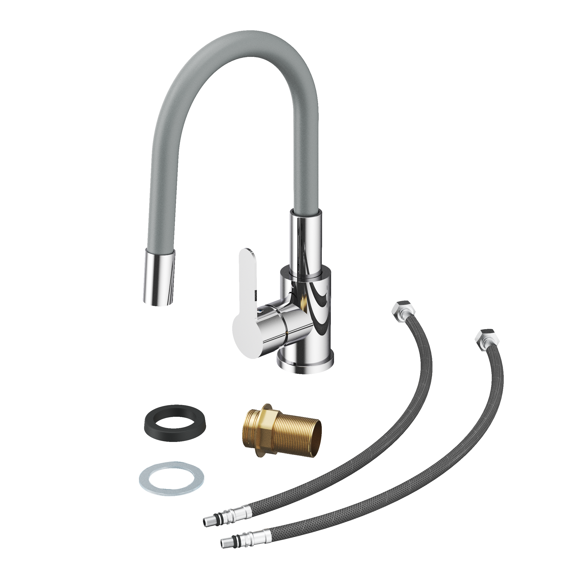 Baterie bucătărie cu gura flexibilă gri GRADO PLUS perlator rotativ