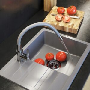 Bateria de bucătărie GRADO PLUS este o soluție modernă și funcțională pentru bucătăria ta. Este echipată cu un gura de scurgere flexibilă, care permite manevrarea comodă a jetului de apă, facilitând sarcinile zilnice, cum ar fi spălarea vaselor sau clătirea produselor alimentare.