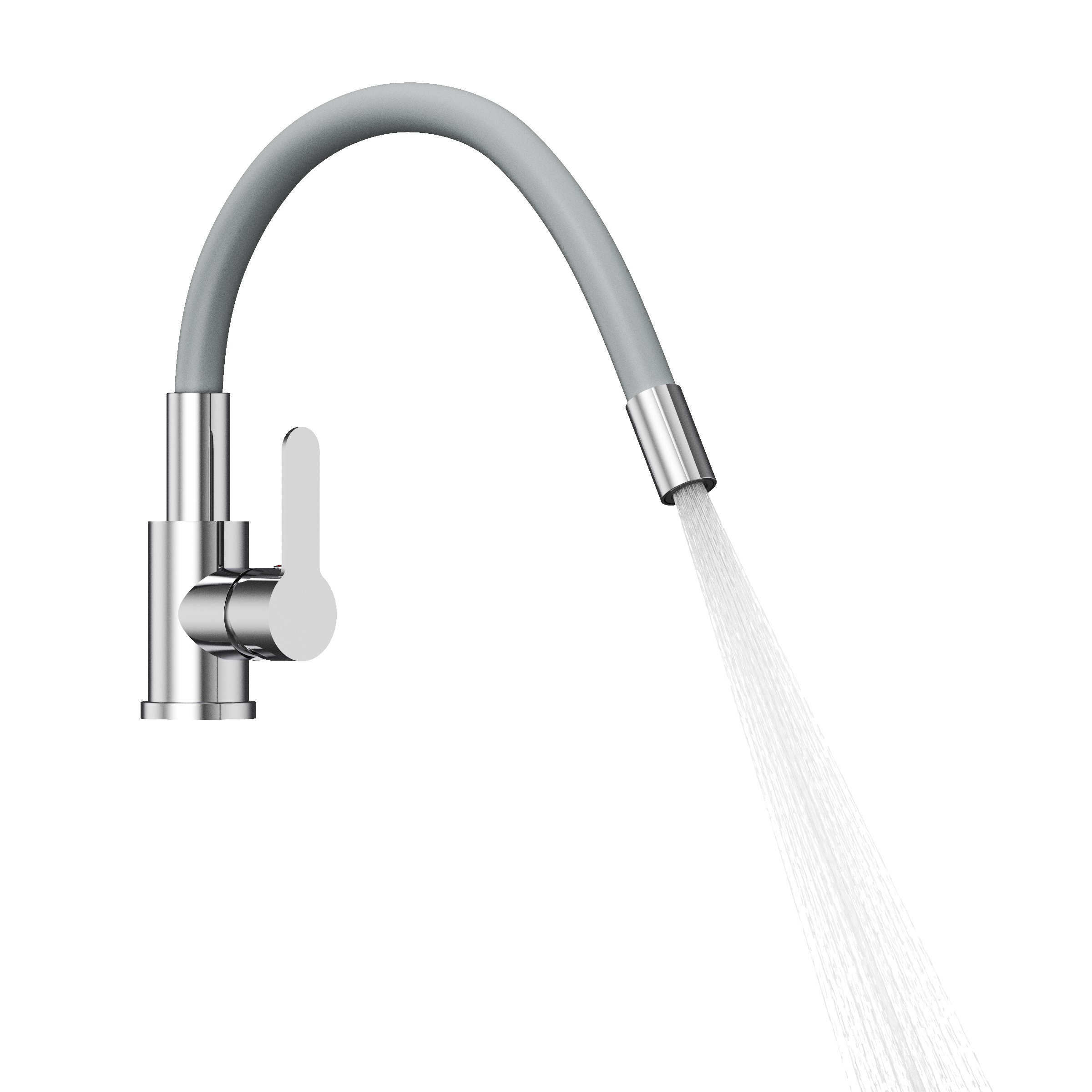 Baterie bucătărie cu gura flexibilă gri GRADO PLUS perlator rotativ