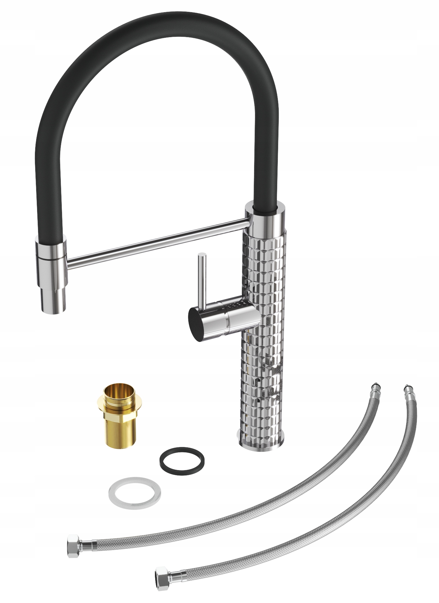 BATERIE DE BUCĂTĂRIE CU PIPĂ FLEXIBILĂ ARGINTIE ROBINET PENTRU CHIUVETĂ CROMAT FANO