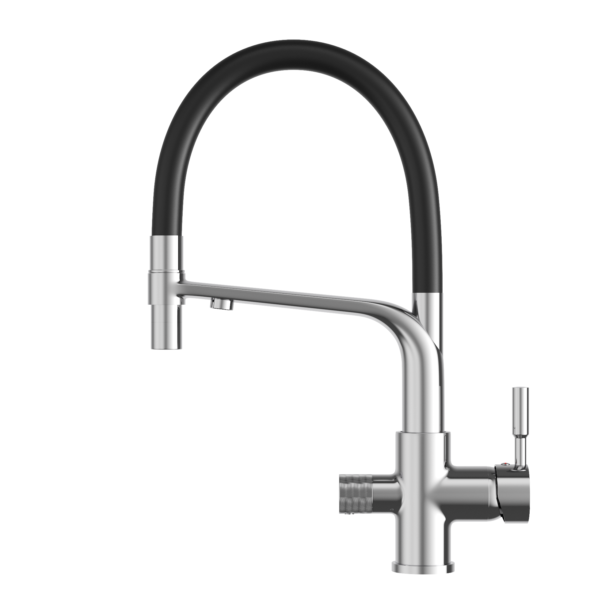 Bateria tridirecțională MALTA este o soluție care permite utilizarea apei reci, calde și filtrate într-un singur loc. Datorită celor trei circuite independente de apă, elimină necesitatea instalării unui robinet suplimentar pe blat, ceea ce se traduce printr-o funcționalitate și estetică superioare bucătăriei. Concepția sa bine gândită și atenția la detalii fac utilizarea confortabilă, iar instalarea rapidă și lipsită de complicații.
