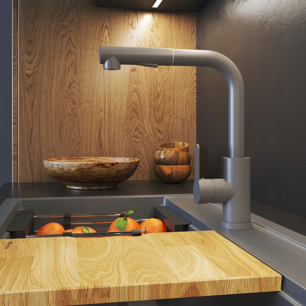 Ebro este un tip de baterie de chiuvetă echipată cu o gură de scurgere specifică care poate fi extrasă din suport și utilizată ca un duș. Acest lucru permite direcționarea fluxului de apă în diverse direcții și locuri, fiind deosebit de utilă și practică în bucătărie.