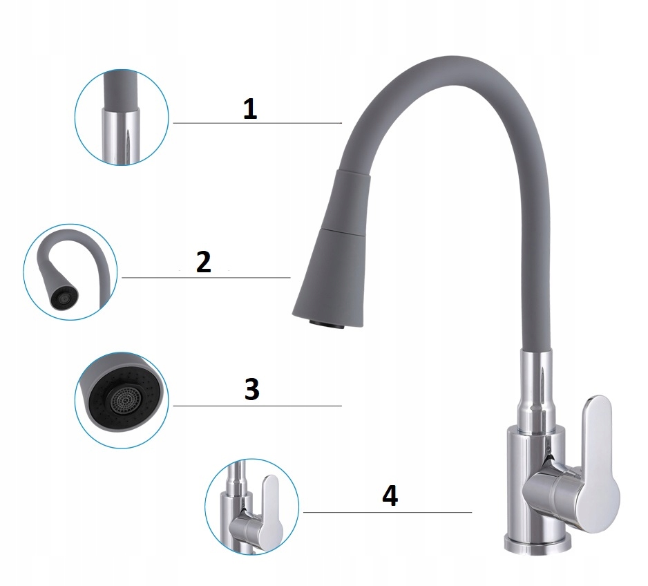 LUVO BATERIE DE BUCĂTĂRIE CU GURA FLEXIBILĂ GRI-CROM