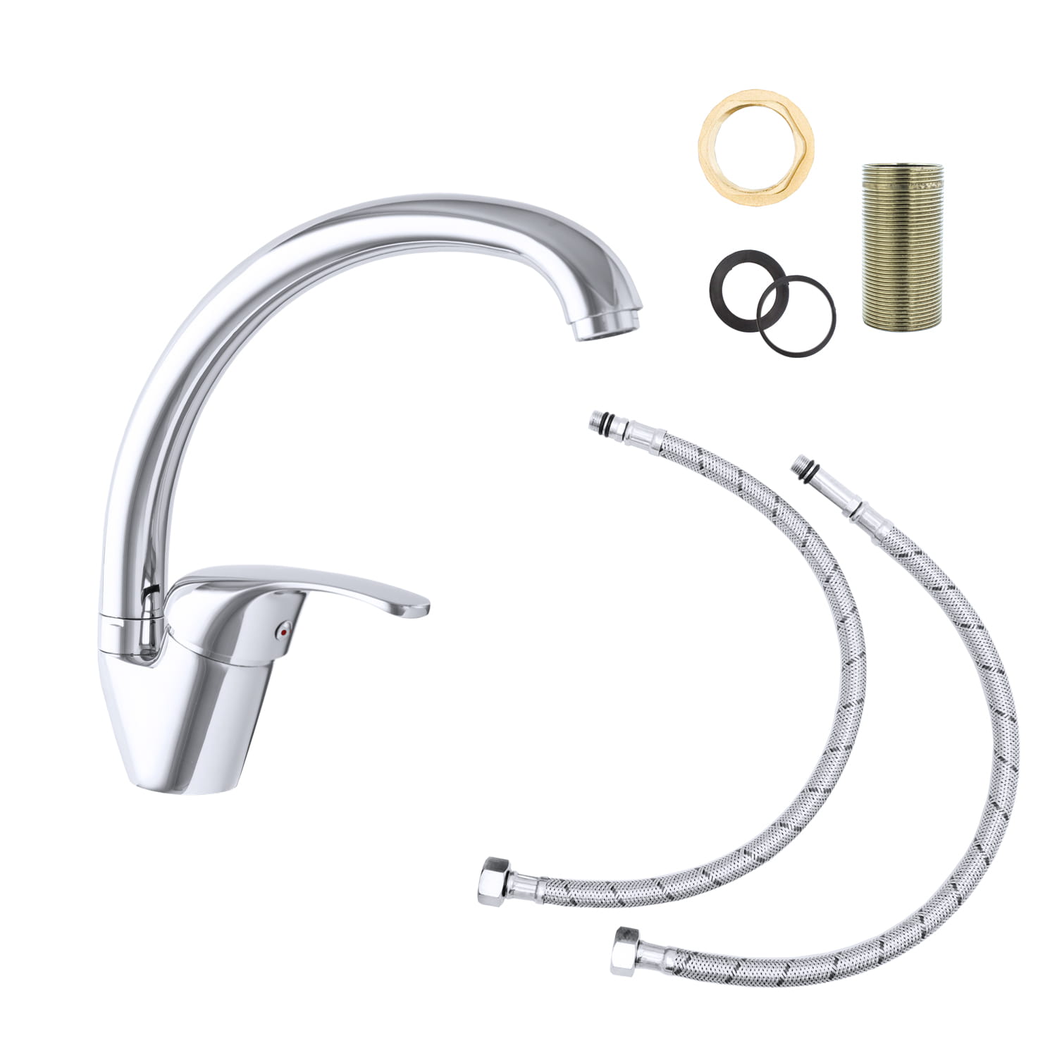 DAX baterie bucătărie înaltă rotativă de înaltă calitate, fabricată din alama, în finisaj crom/lustruit. Cartuș ceramic 35 mm. Stratul de protecție al bateriei este rezistent la decolorare și temperaturi ridicate. Pipă rotativă 360'. Perlator interschimbabil, aerator m24 ECO. Orificiu de montaj standard 35 mm.