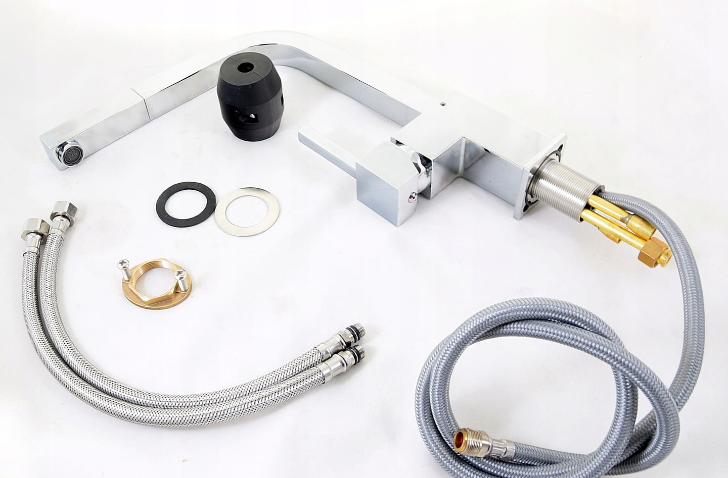 Bateria de bucătărie NANTES de înaltă calitate, fabricată din alamă, de culoare crom. Suprafața bateriei este rezistentă la decolorare și temperaturi ridicate. Cartuș ceramic de 40 mm. Gură de scurgere pivotantă, extensibilă, cu un unghi de 360°. Cap de duș cu două funcții (două tipuri de jet de apă). Orificiu standard de montaj de 35 mm.