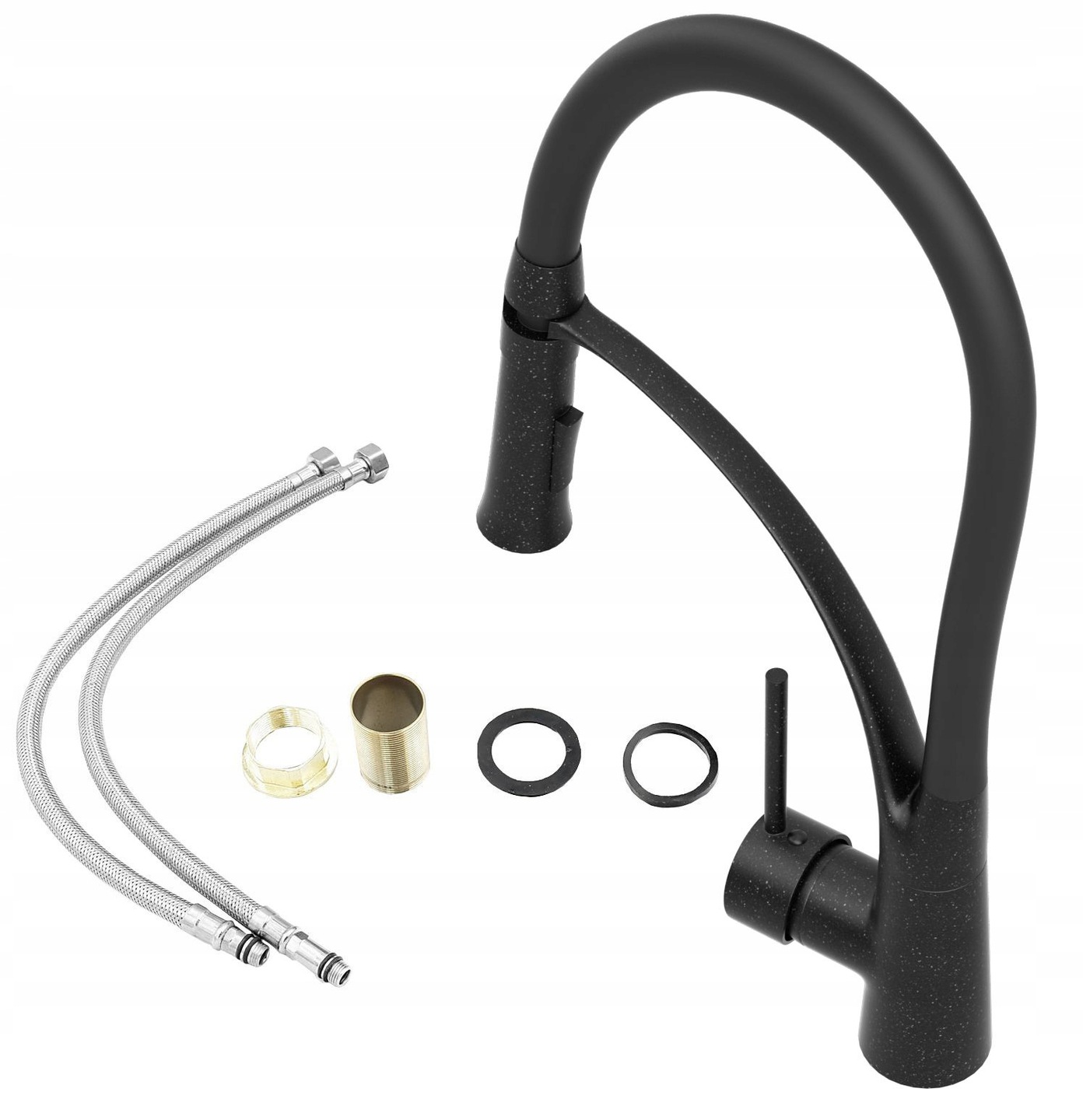 Bateria de bucătărie NEXO cu duză extensibilă și duș cu două funcții NEAGRĂ cu stropi
