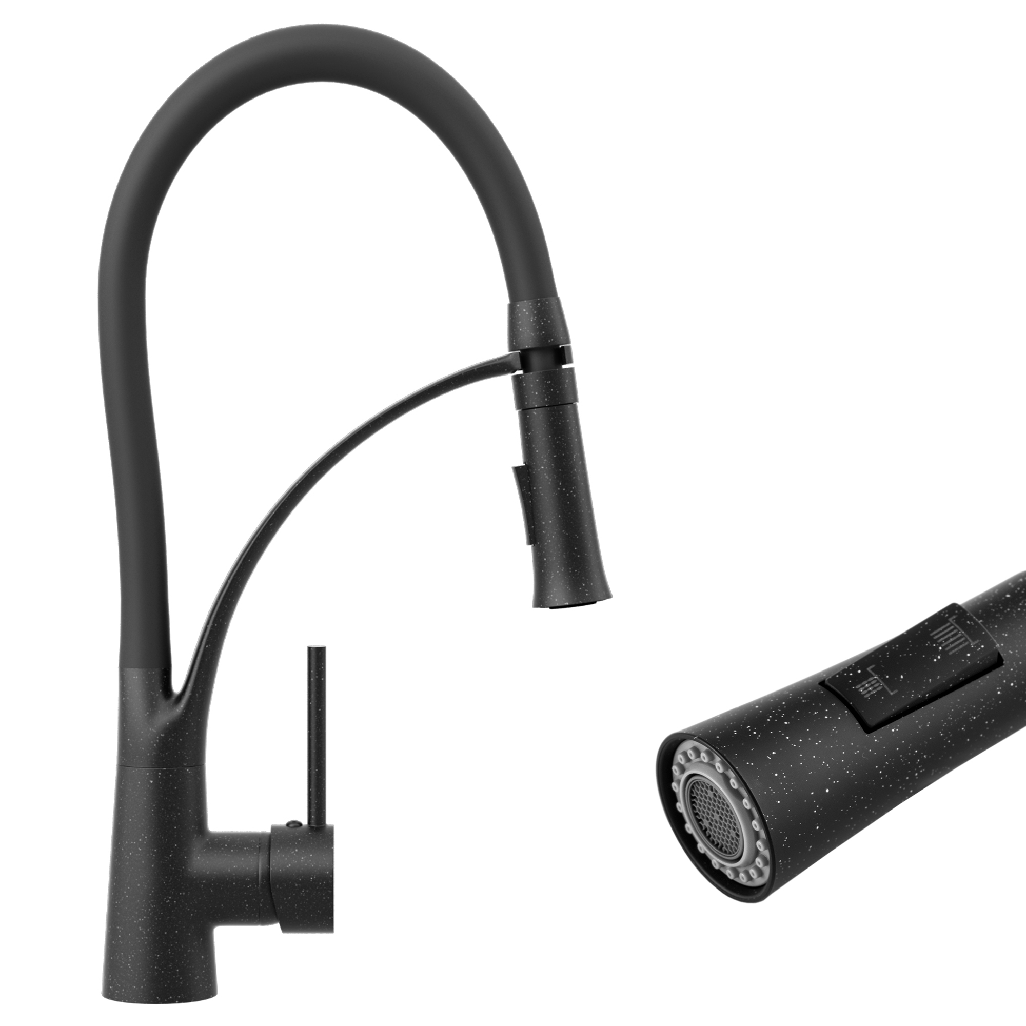 Bateria de bucătărie NEXO cu duză extensibilă și duș cu două funcții NEAGRĂ cu stropi