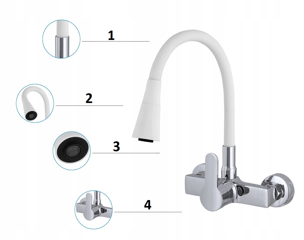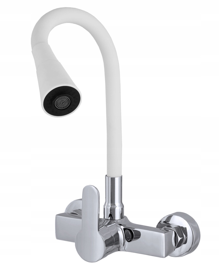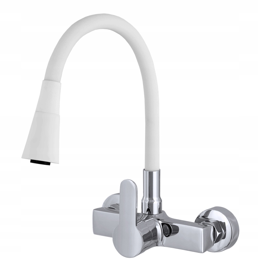 FLEXO BATERIE DE BUCĂTĂRIE MONTATĂ PE PERETE CU PIPĂ FLEXIBILĂ ALB-CROM
