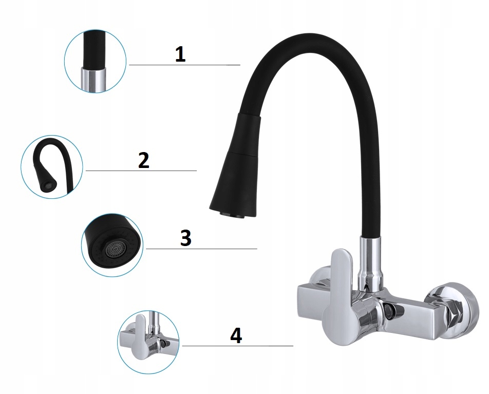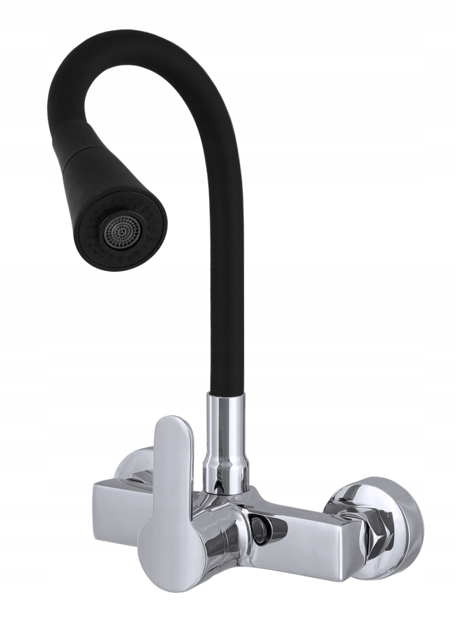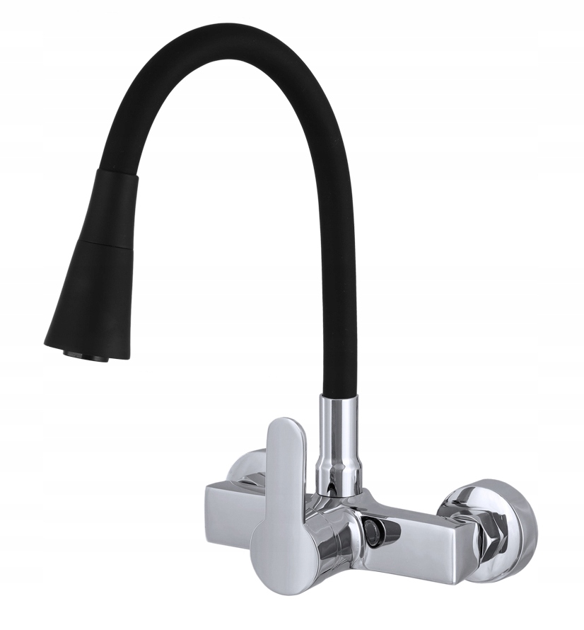 FLEXO BATERIE DE BUCĂTĂRIE MONTAJ PE PERETE CU GURĂ DE SCURGERE FLEXIBILĂ NEGRU-CRÓM