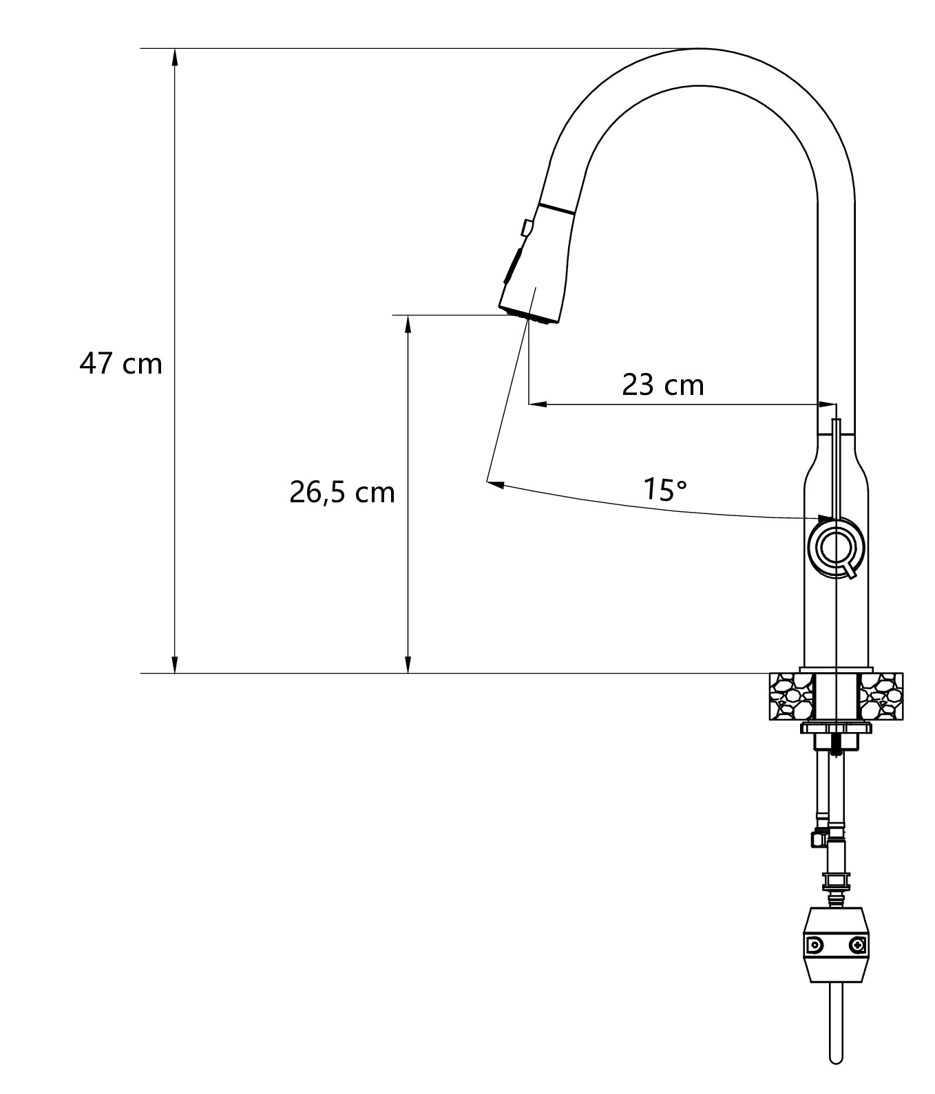 - Gura de scurgere extensibilă ideală pentru spălarea vaselor mari. Furtunul extensibil al guriu de scurgere permite umplerea comodă a recipientelor aflate atât în chiuvetă, cât și în afara acesteia, precum și curățarea blatului.