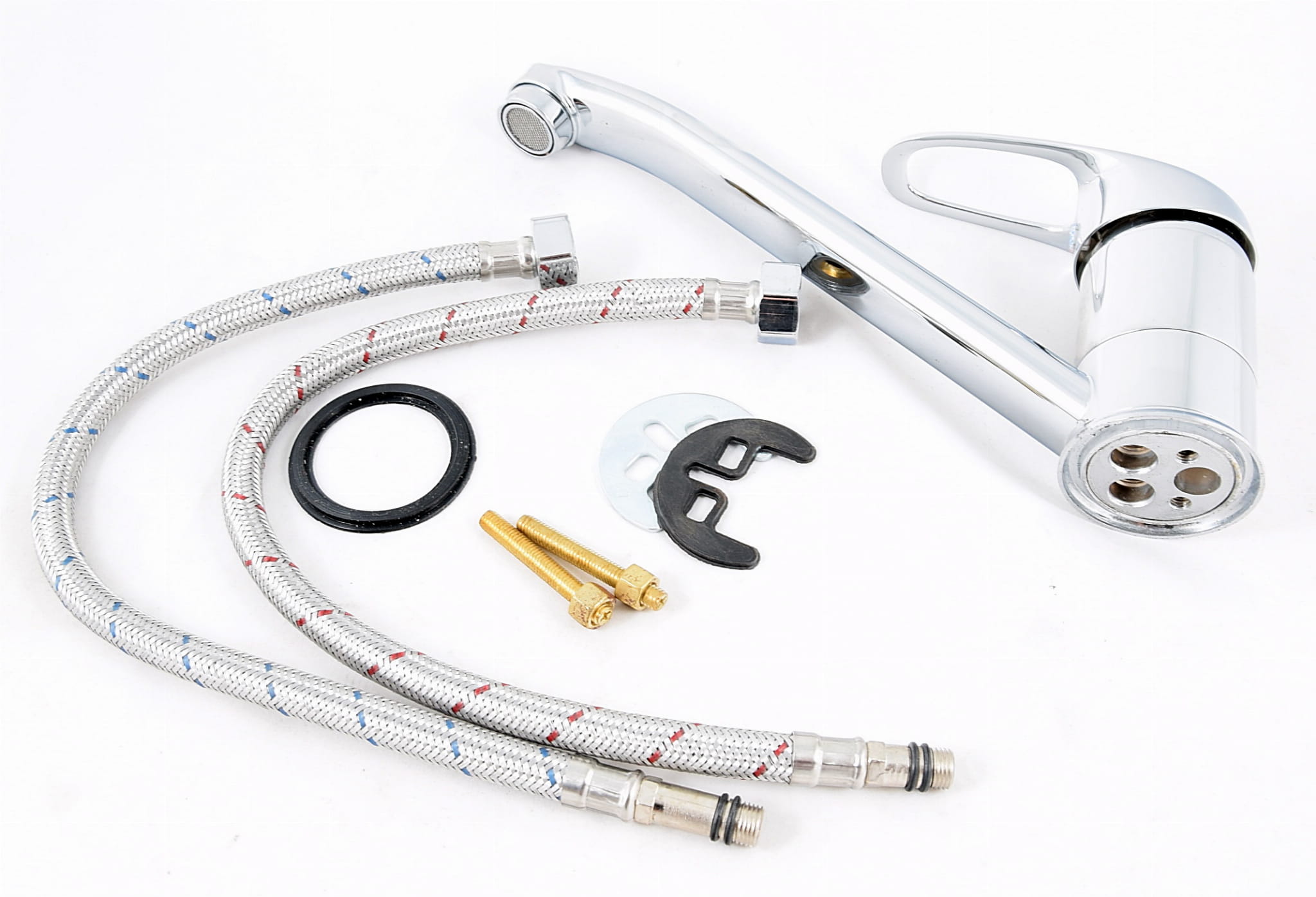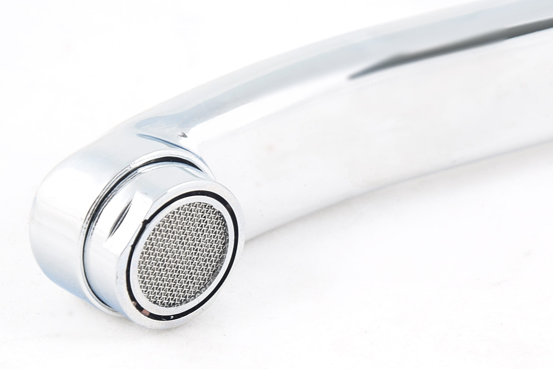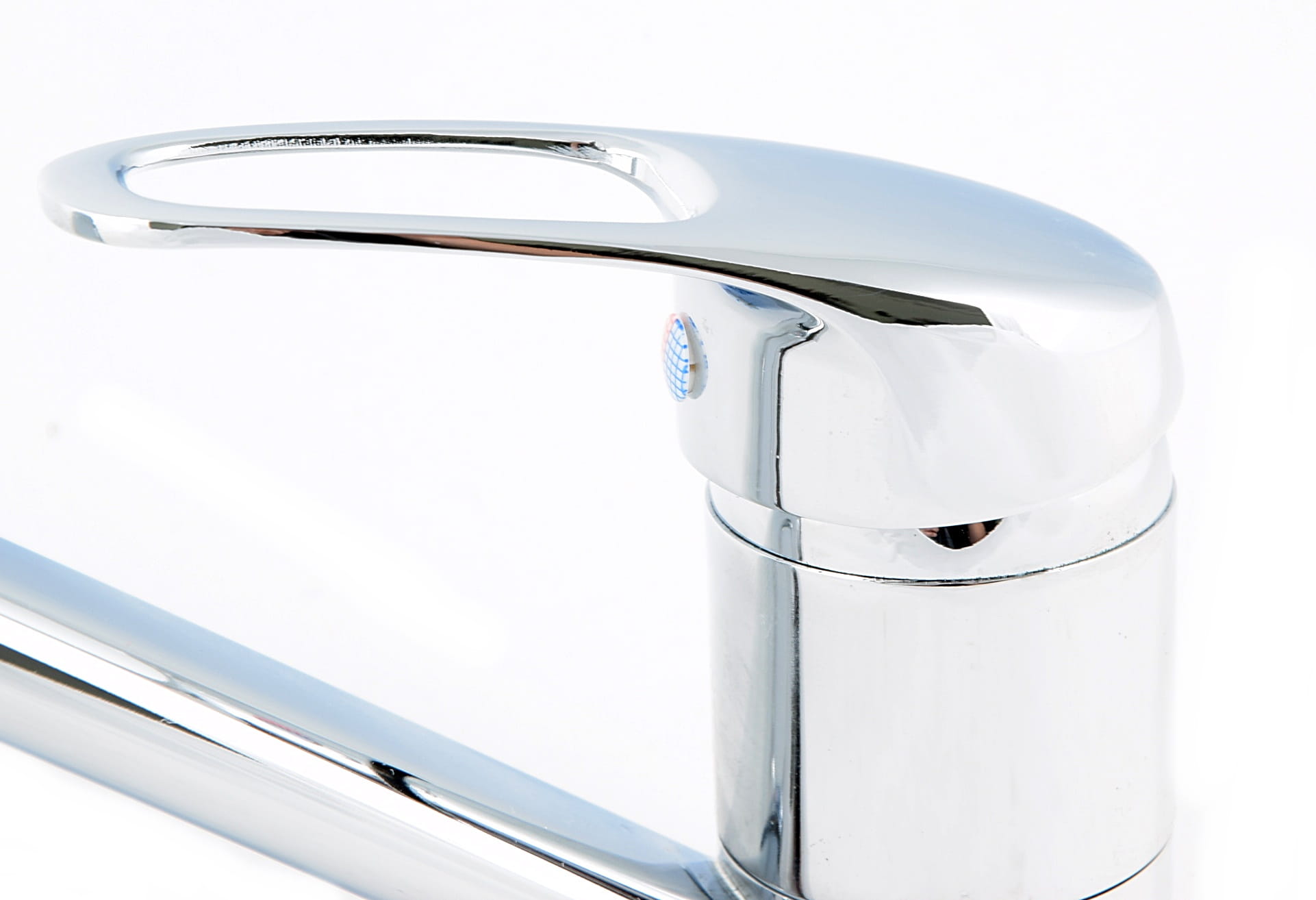 DAX baterie de bucătărie de înaltă calitate, realizată din alamă, în finisaj cromat. Cartuș ceramic de 40 mm. Suprafața bateriei rezistentă la decolorare și temperaturi ridicate. Pipă rotativă. Aerator înlocuibil, cu aerare m24 EKO. Orificiu standard de montare de 35 mm.