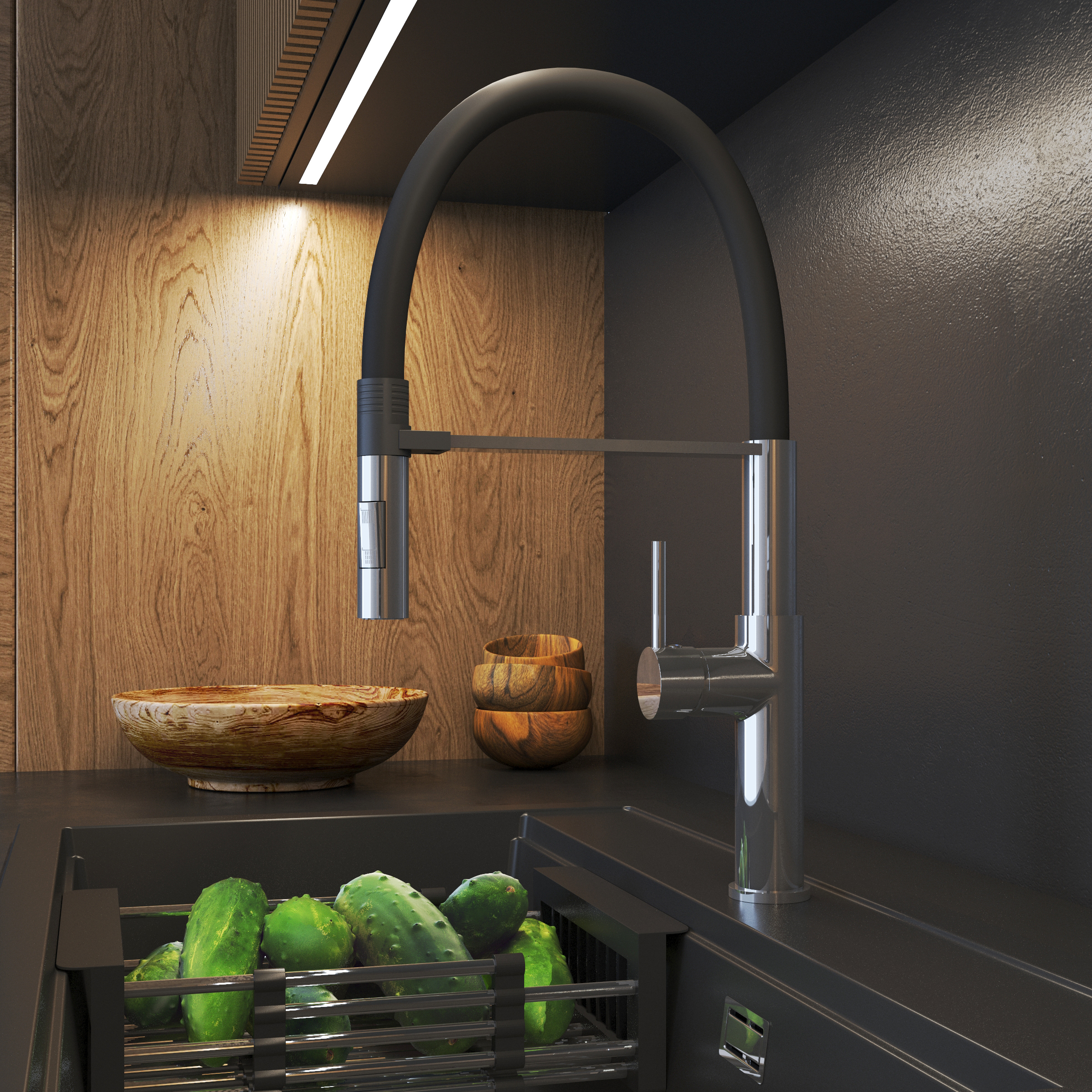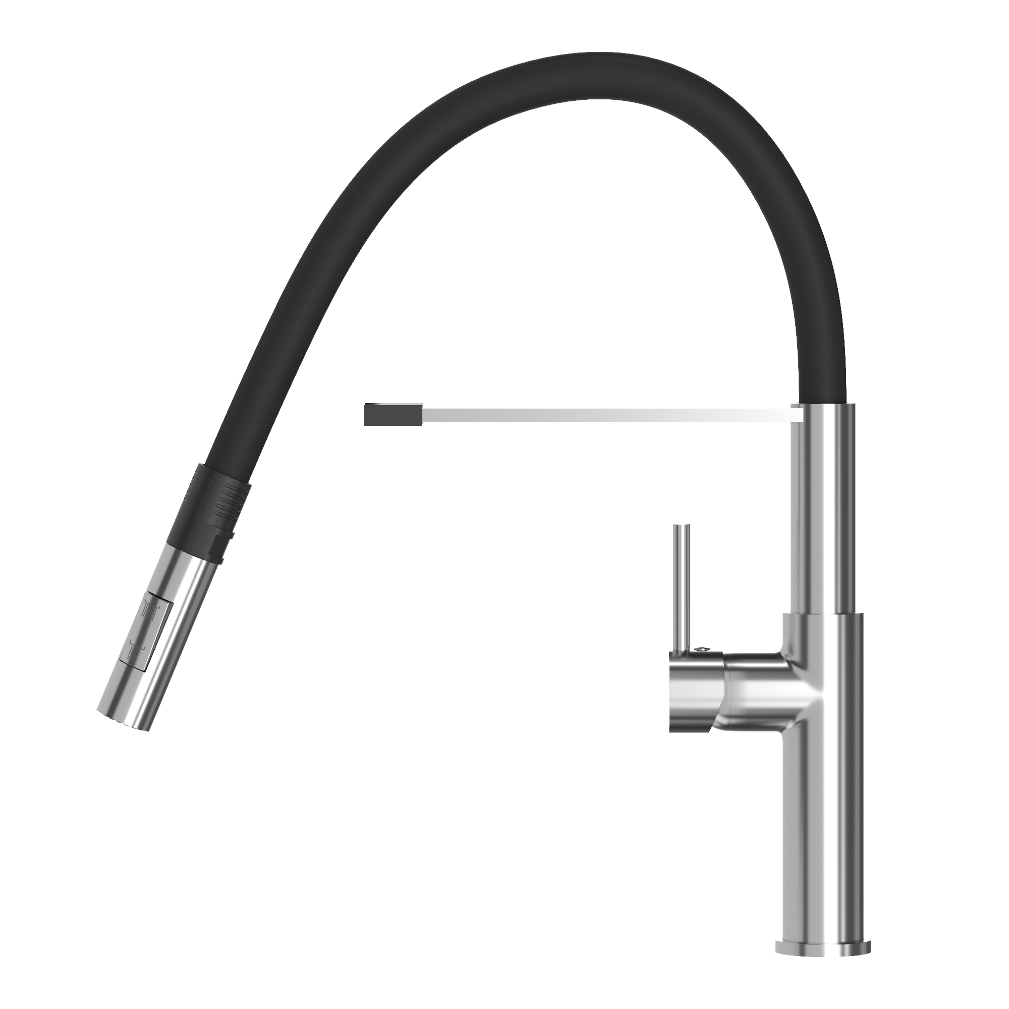 Bateria Soria, dotată cu o pipă flexibilă și retractabilă, este o soluție inovatoare care oferă un confort excepțional în timpul sarcinilor zilnice din bucătărie.
