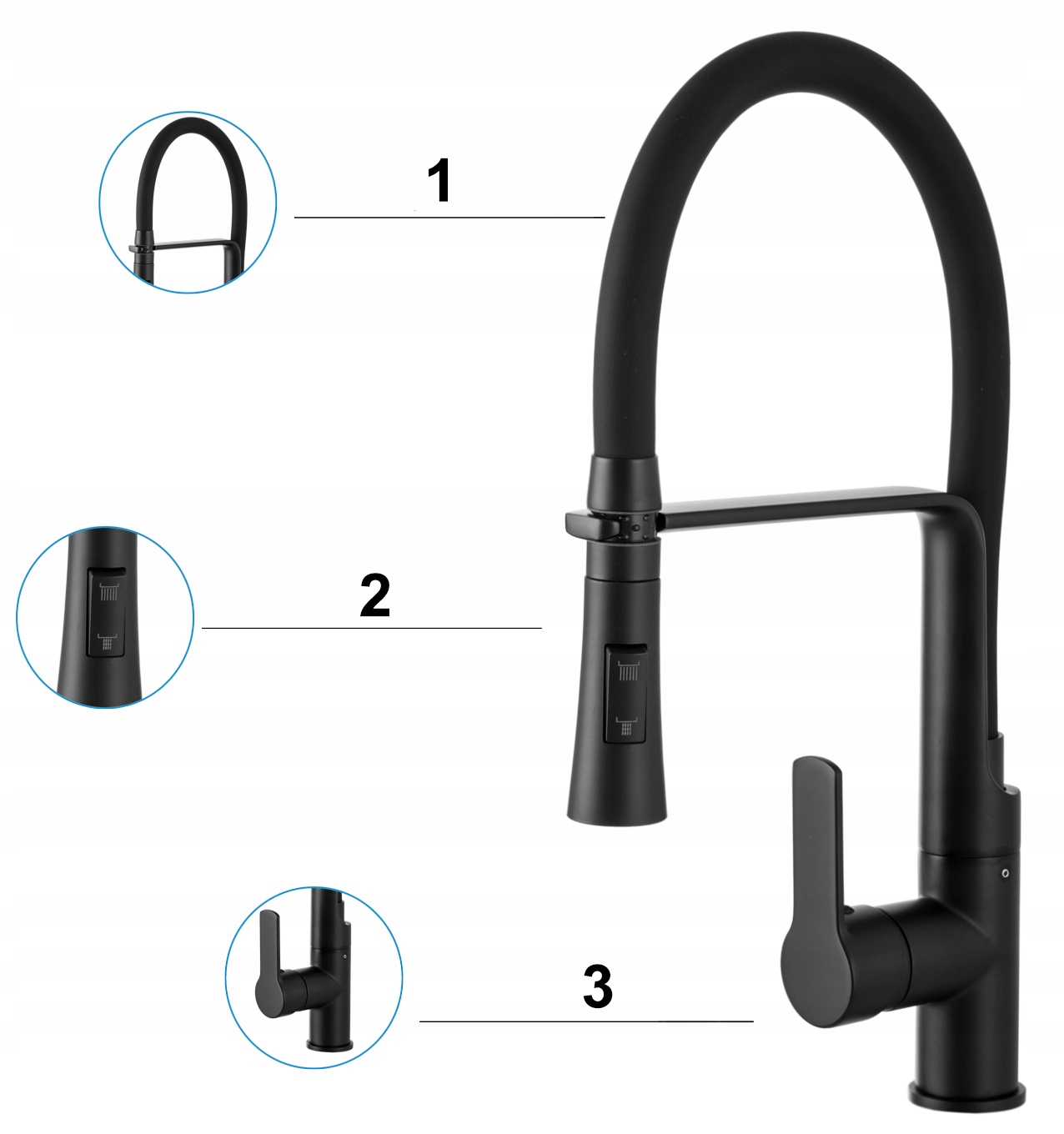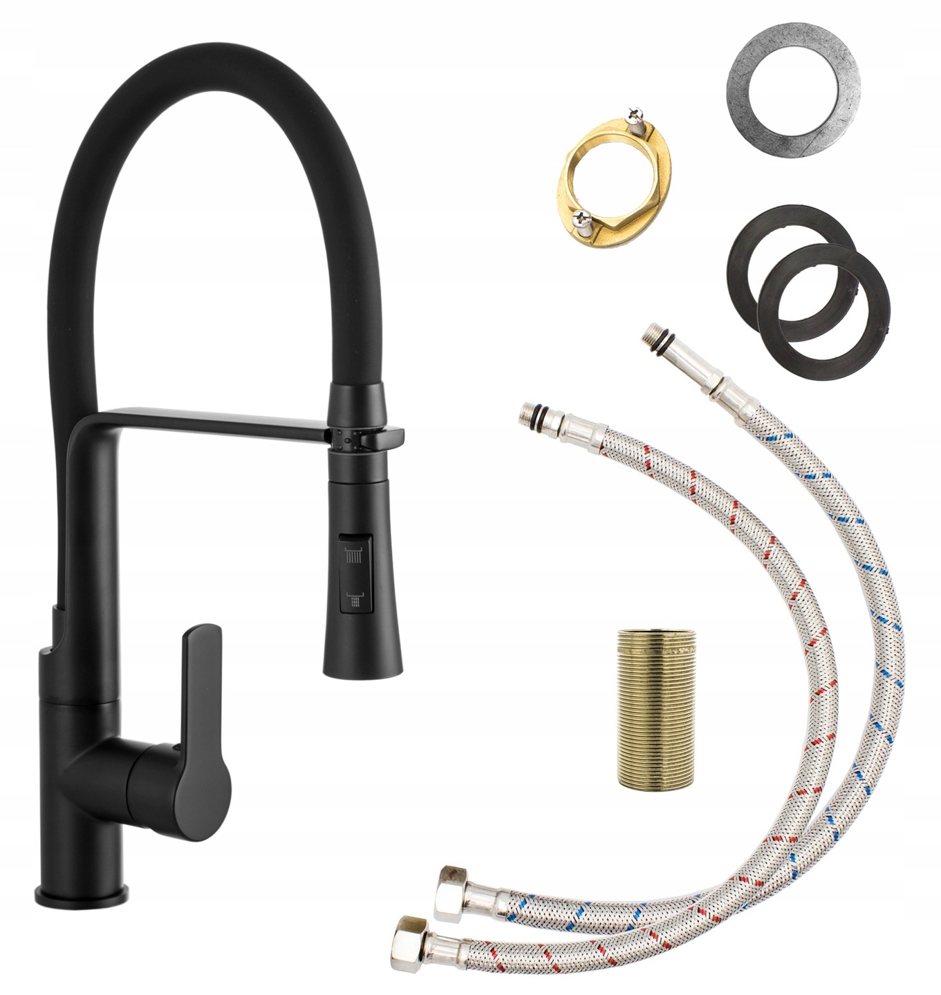 Baterie bucătărie Vegas negru cu pipă flexibilă duș/jet