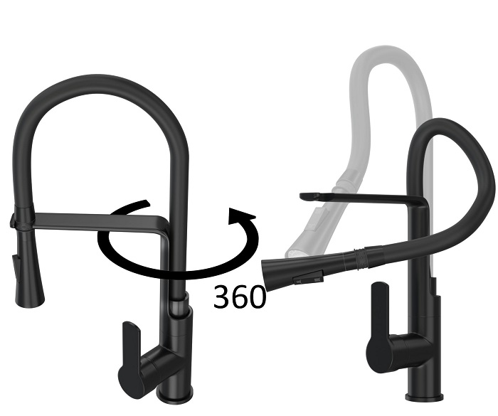 Baterie bucătărie Vegas negru cu pipă flexibilă duș/jet