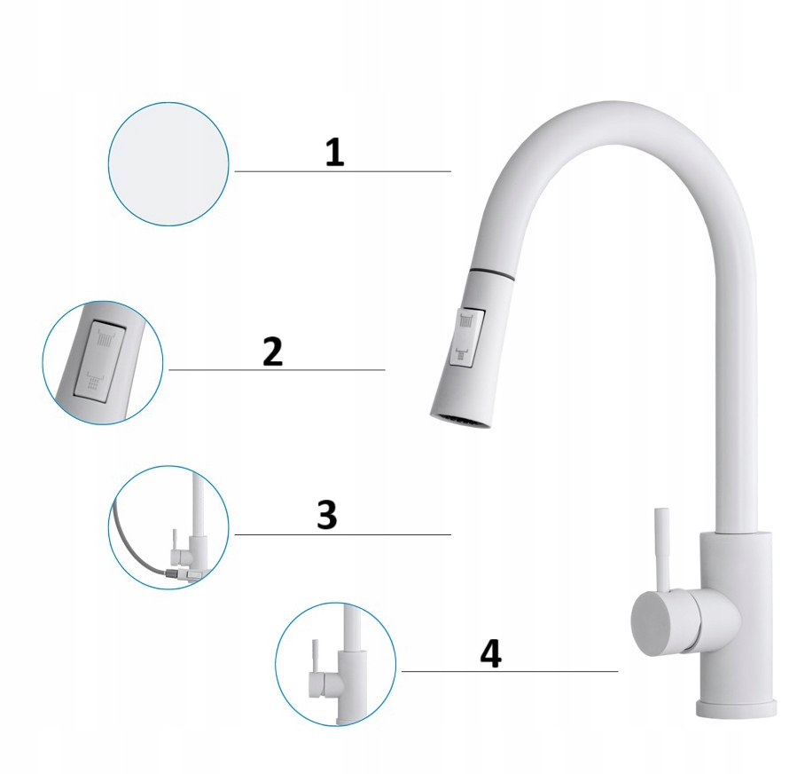 BATERIE DE BUCĂTĂRIE CU GURĂ DE SCURGERE EXTRACTIBILĂ LOSETO ALBĂ