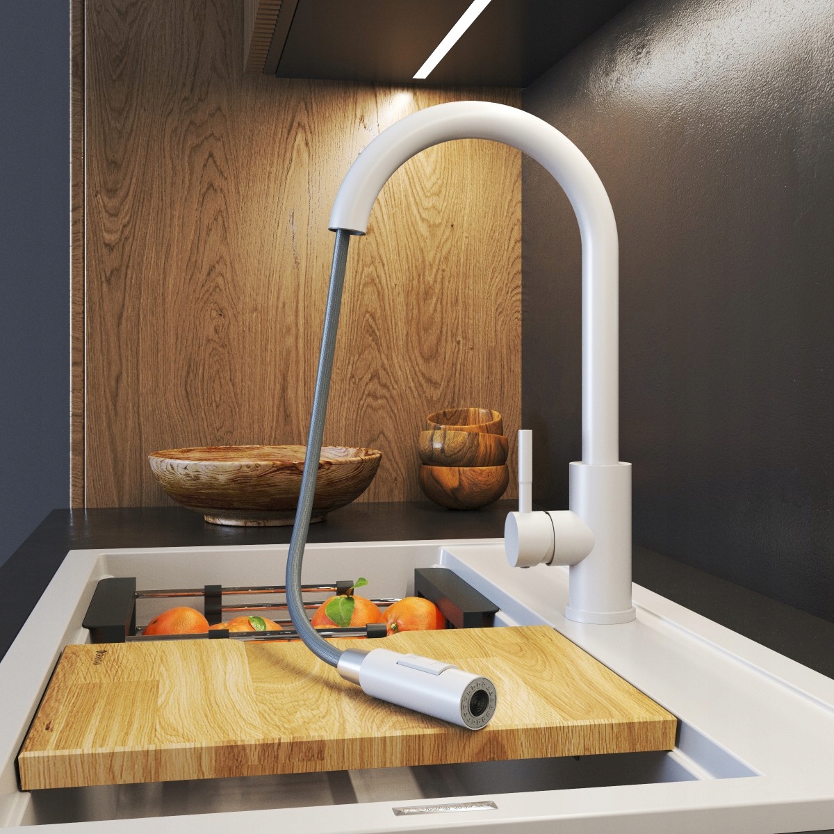 BATERIE DE BUCĂTĂRIE CU GURĂ DE SCURGERE EXTRACTIBILĂ LOSETO ALBĂ