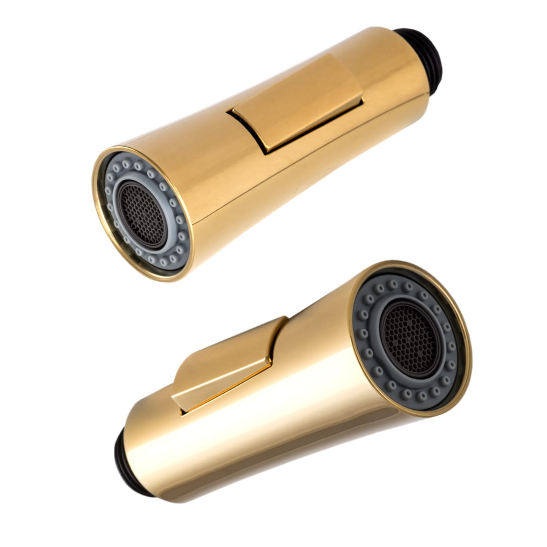 Para pentru bucătărie Nexo cu duză extractibilă, fabricată din material PVC, de culoare aurie. Două funcții de curgere a apei (duș și constant). Filet standard 1/2''. Suprafața parei este rezistentă la decolorare și temperaturi ridicate. Garnituri anti-depuneri de calcar. Compatibilă cu orice furtun de bucătărie cu racord de 1/2''.