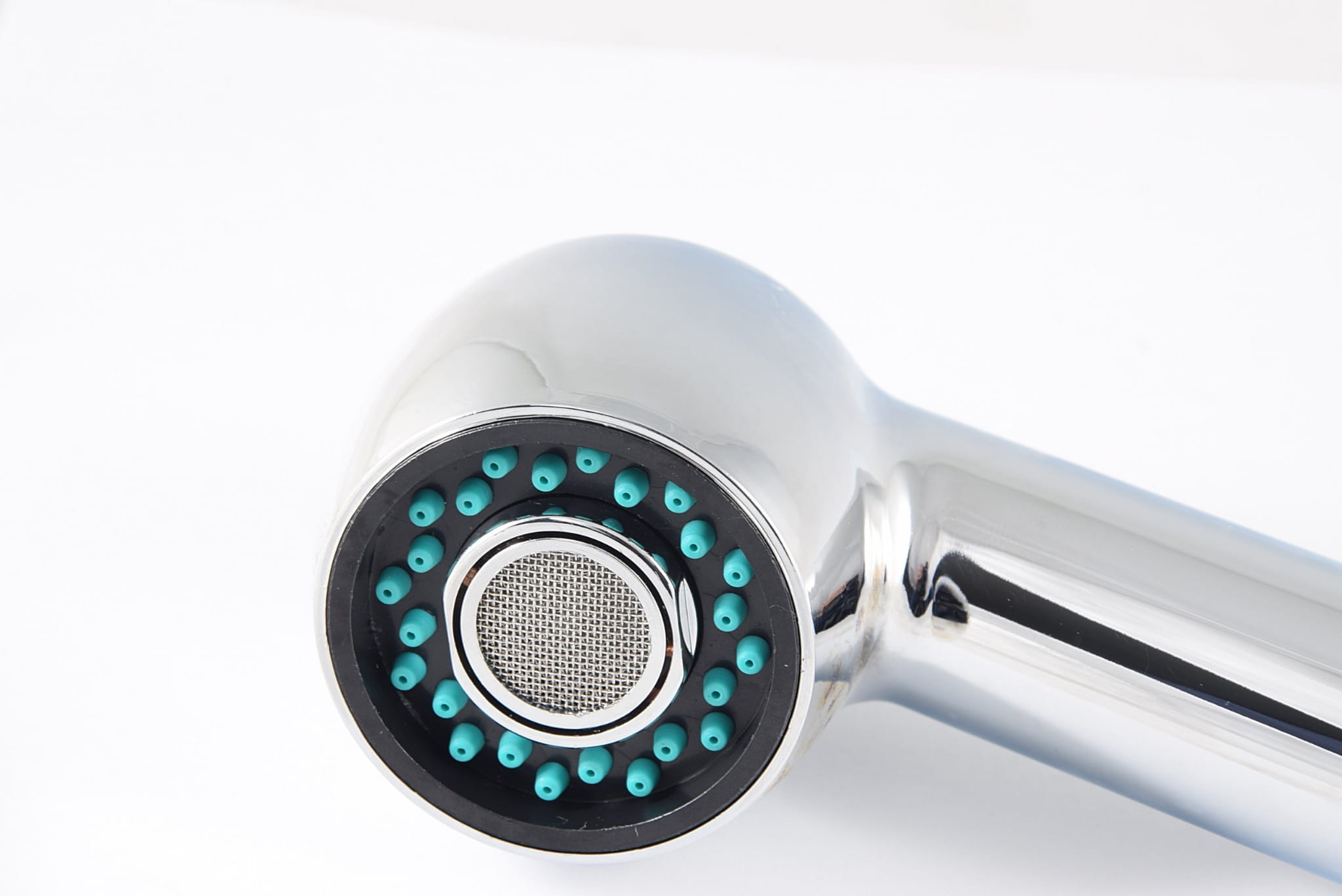 Duză de bucătărie pentru baterie cu gura de scurgere extensibilă, realizată din material PVC, în culoarea crom / lucios. Două funcții de jet de apă (duș și continuu). Filet standard 1/2''. Suprafața duzei este acoperită cu crom de înaltă calitate, rezistentă la decolorare și temperaturi ridicate. Duze cu sistem Anticalc. Garnituri din cauciuc anticalcar. Compatibilă cu orice furtun de bucătărie cu racord 1/2''.