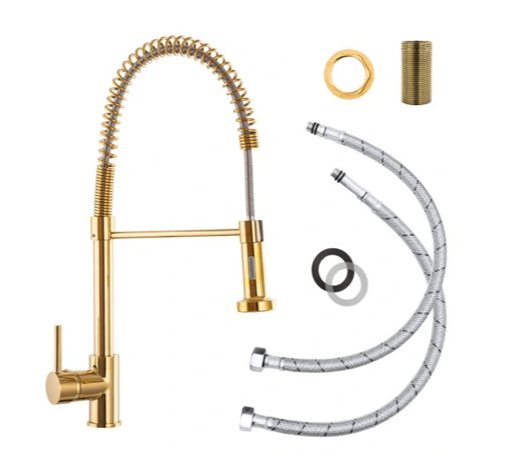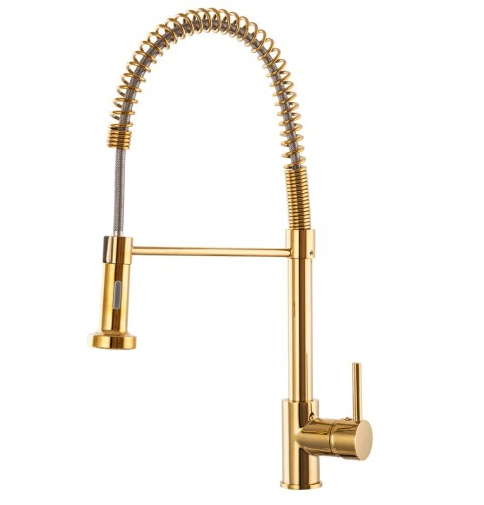 Baterie bucătărie aurie spirală cu duș extractibil a fost adăugat în coș
