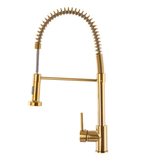 Baterie bucătărie aurie spirală cu duș extractibil a fost adăugat în coș