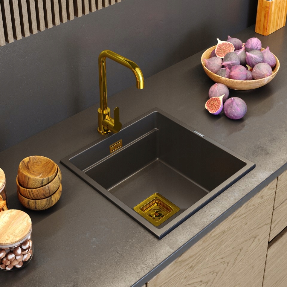 BATERIE DE BUCĂTĂRIE AURIU ROBINET ÎNALT ROTUND STEEL