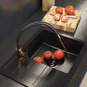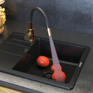 Bateria de bucătărie GRADO PLUS este o soluție modernă și funcțională pentru bucătăria ta. Este echipată cu o pipă flexibilă, care permite manevrarea confortabilă a jetului de apă, facilitând activitățile zilnice precum spălarea vaselor sau clătirea produselor alimentare.