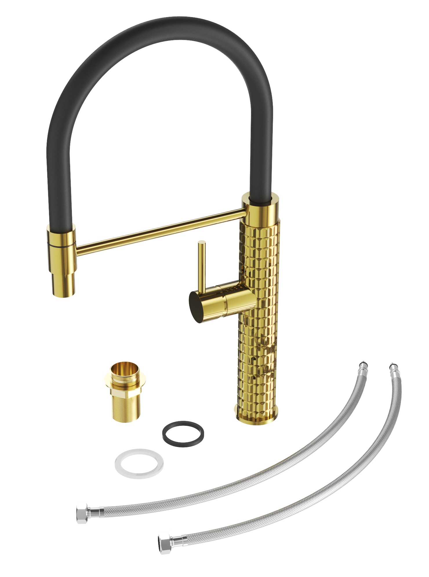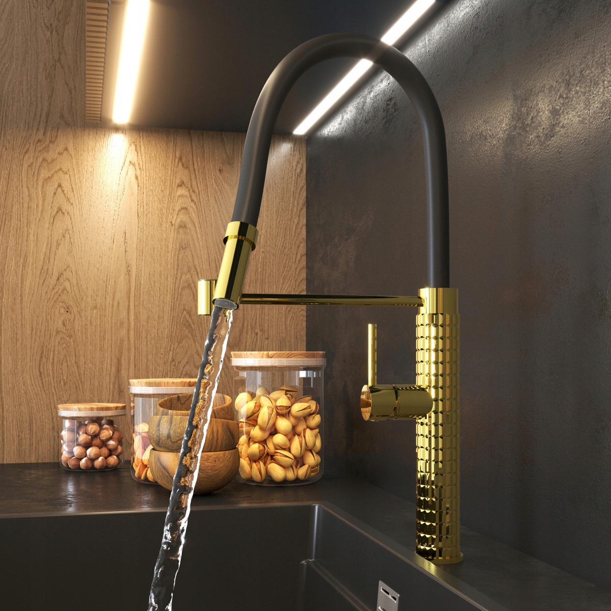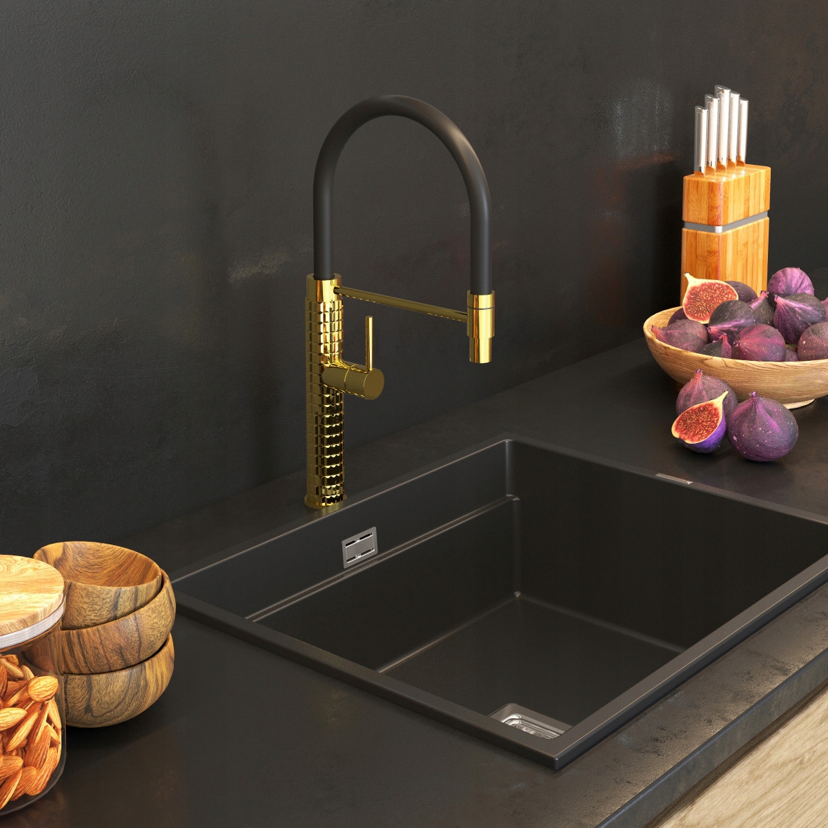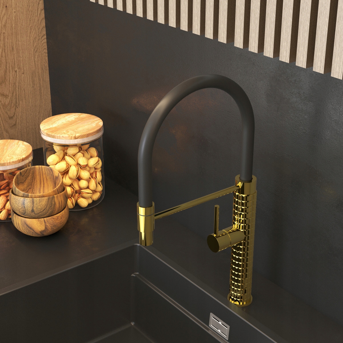FANO BATERIE DE BUCĂTĂRIE CU GURĂ DE SCURGERE FLEXIBILĂ AURIE/NEAGRĂ
