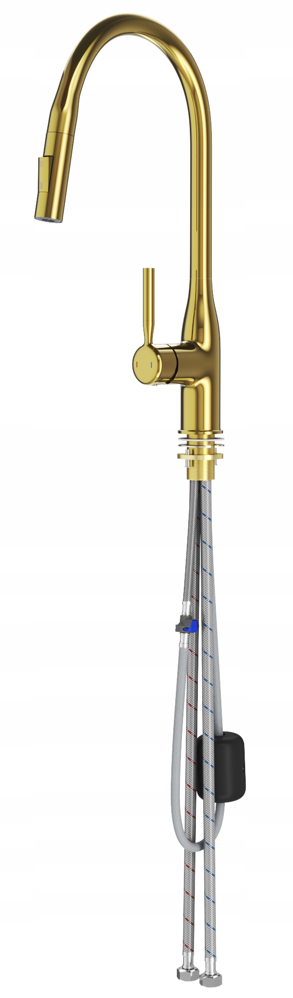BATERIA DE BUCĂTĂRIE CU DUS EXTRACTIBIL AURIE ROBINET BIFUNCȚIONAL MODERN FOSSA