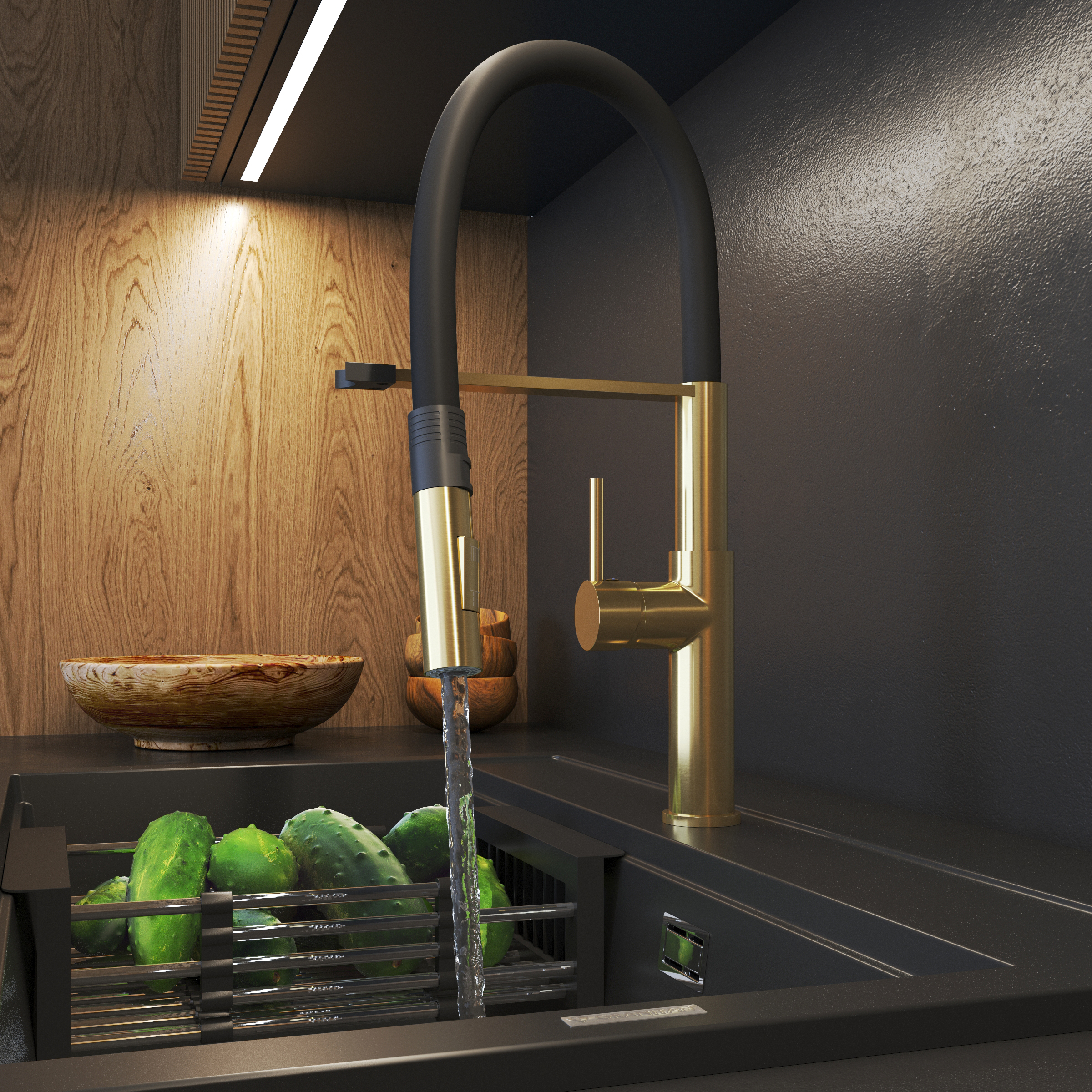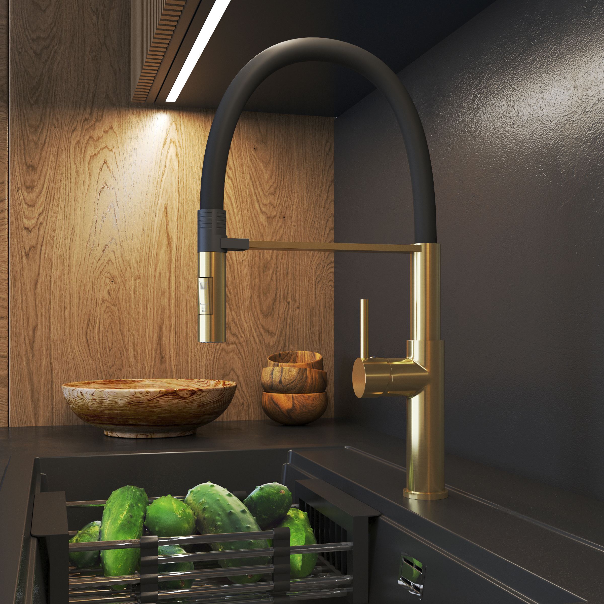 BATERIE DE BUCĂTĂRIE CU PIPĂ FLEXIBILĂ SORIA AURIE
