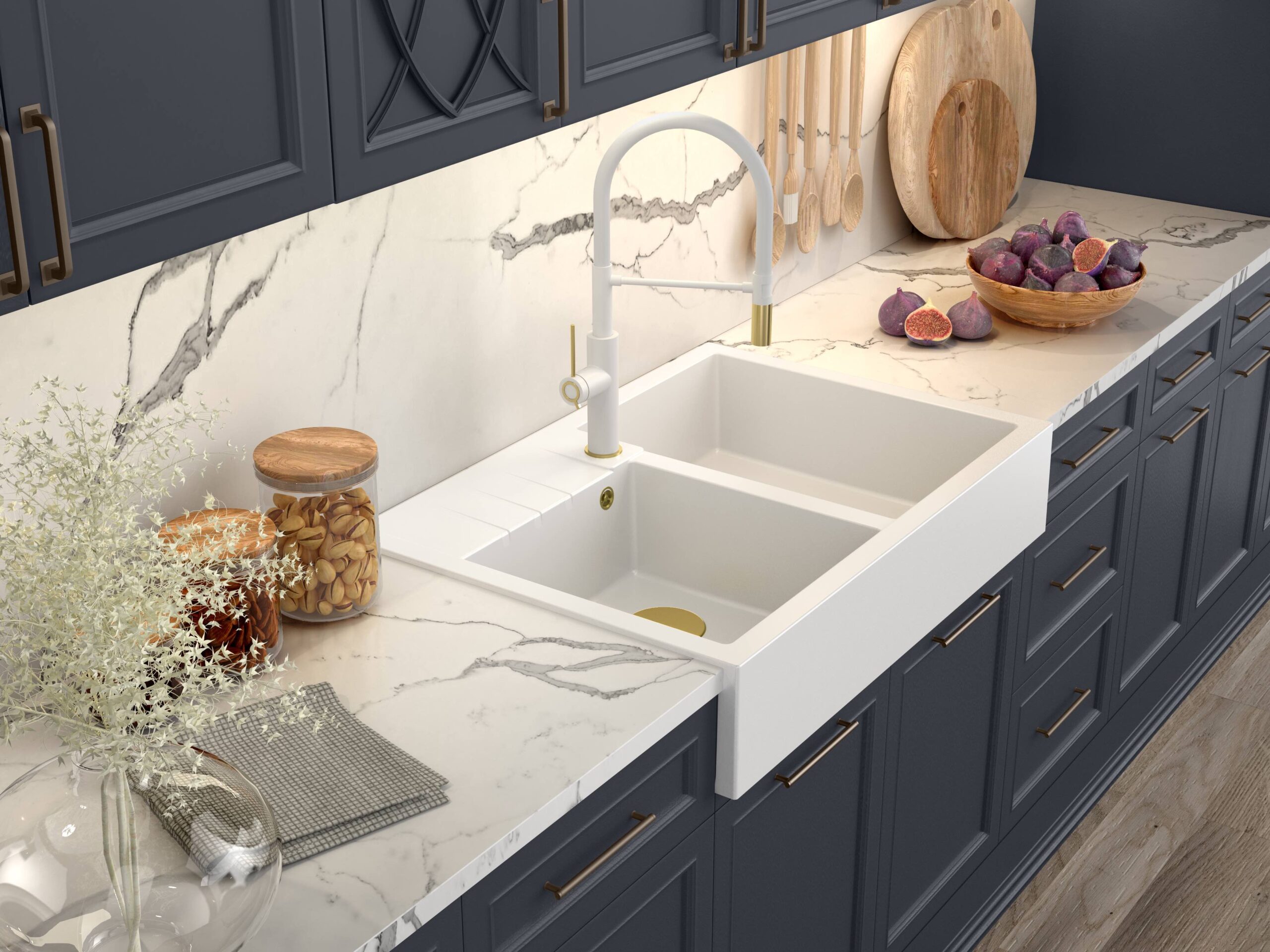 Materialul GraniteQ este compus din particule fine de granit (75-80%) legate între ele printr-un liant de înaltă calitate (20-25%), ceea ce conferă chiuvetei o rezistență și o durabilitate excepționale.