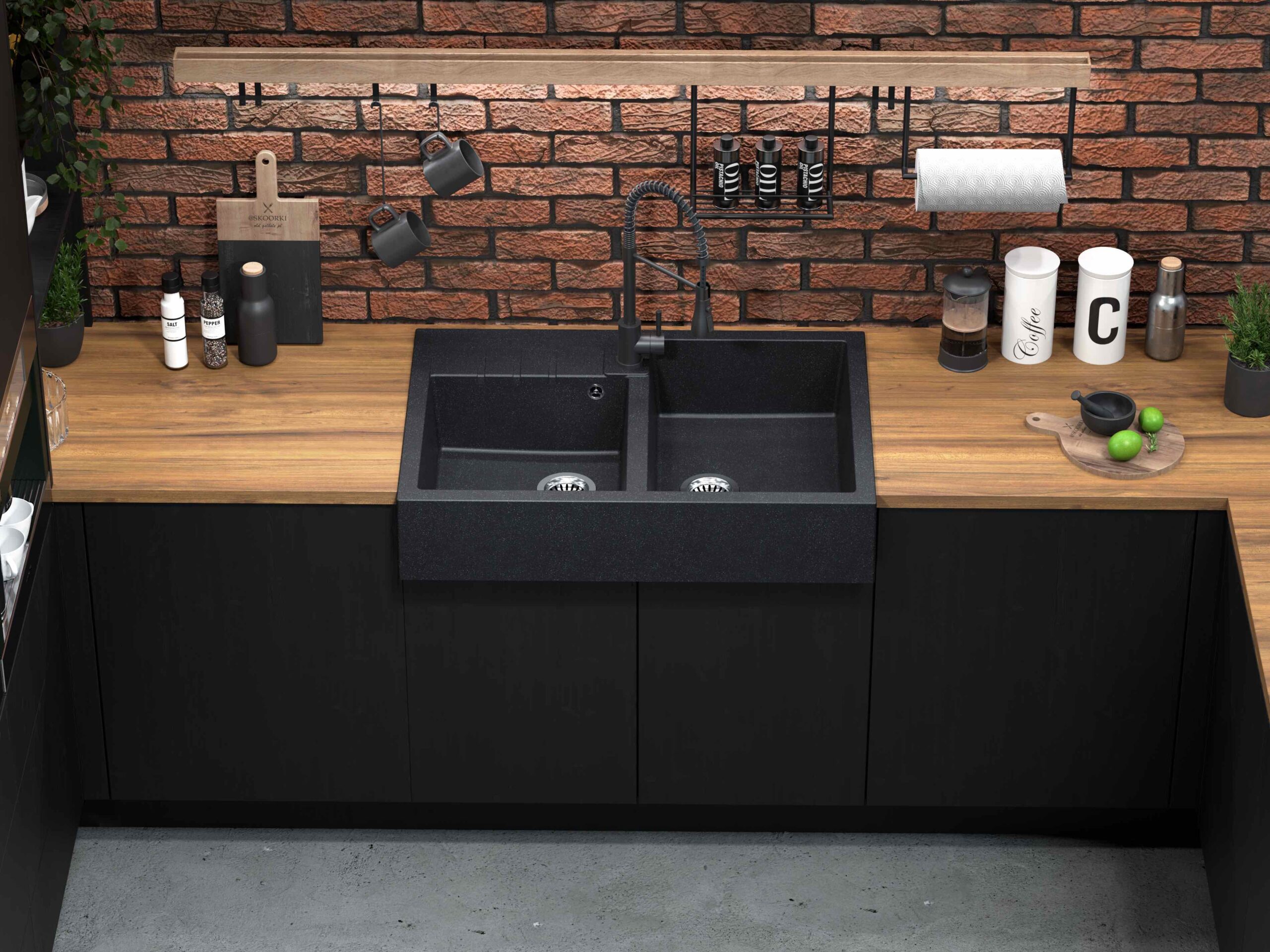 Materialul GraniteQ este creat din particule fine de granit (75-80%) legate între ele printr-un liant de înaltă calitate (20-25%), oferind chiuvetei o rezistență și durabilitate excepționale.